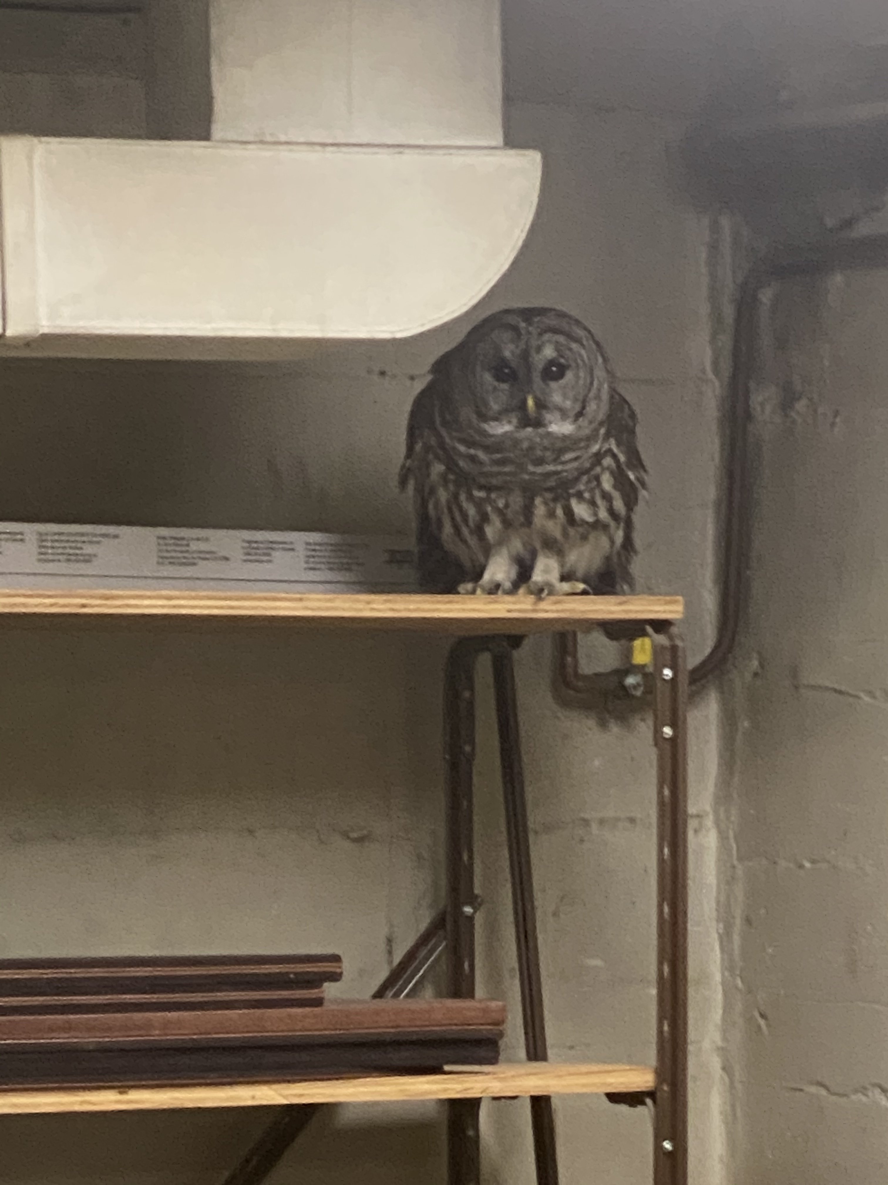 I was involved in a hunting camp for many years and at night after supper we would often sit around the fire with a toddy and tell each other lies. We would sometimes leave on one small light above the skinning rack and in just a few minutes the top crossbeam would be holding 3-4 large, adult Barred owls. It was a riot to watch them push/shove for dominance on a beam that was only one height. (The alfa is always trying to be on a higher perch than all others.)