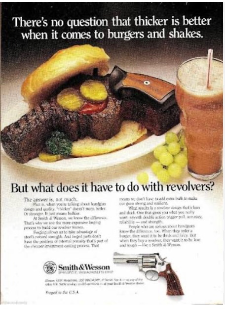 Remember the ads from Smith and Wesson back in the day when they were comparing cast Ruger vs forged S&W? Thick is good for burgers and shakes, but revolver frames not so much or words to that effect. Pictured with a thick revolver shaped hamburger with GP 100 grips.