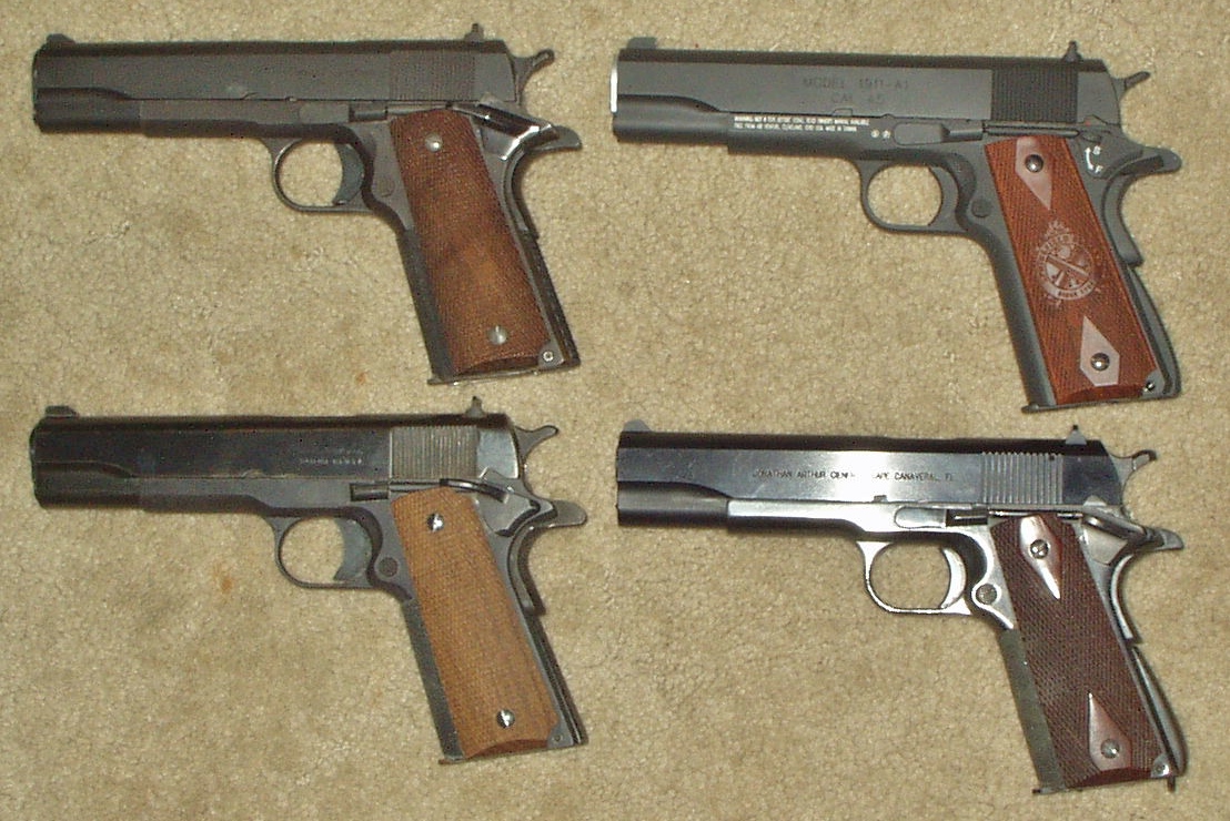 Here's a few of mine, including my "house gun," a homebuilt .45 based on a WWII Ithaca slide and Essex frame; lightweight .45 built on Fed Ord alloy frame with WWII Rem slide; .22 built on original 1924 1911A1 frame with Ciener .22LR conversion; .177 (BB)/CO2 Springfield Armory Mil-Spec that's perfect for basement shooting on days as cold as this one.