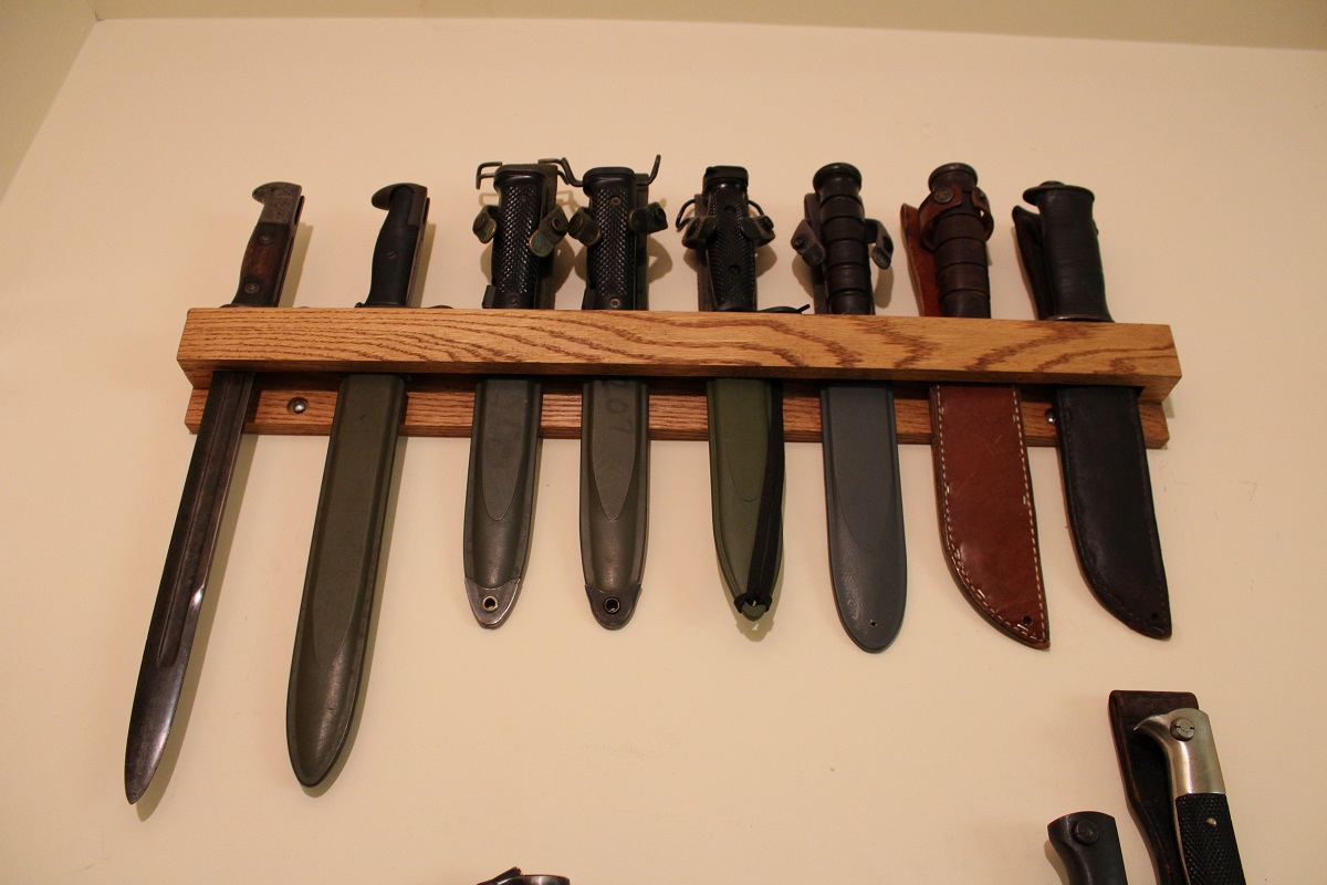 If you look at the second picture the 2 bayonets with similar wooden grips would be appropriate for most of the German rifles from the WWI. One is the butcher blade model and the other is called a saw back bayonet. It has saw teeth opposite the blade. These were issued to Pioneer units and they used them to cut brush. However, when used in combat they were known to give a really nasty wound. It's said that the British would execute Germans prisoners on the spot who had these. The five on the right hand side of the first picture are German bayonets used in the WWII. I have been collecting bayonets for over 50 years. Gun shows used to have boxes of them that you could pick through. Several I even bought at yard sales.Started to get into it years ago but my $ was too tight for what the market was then. Just never got back to it….