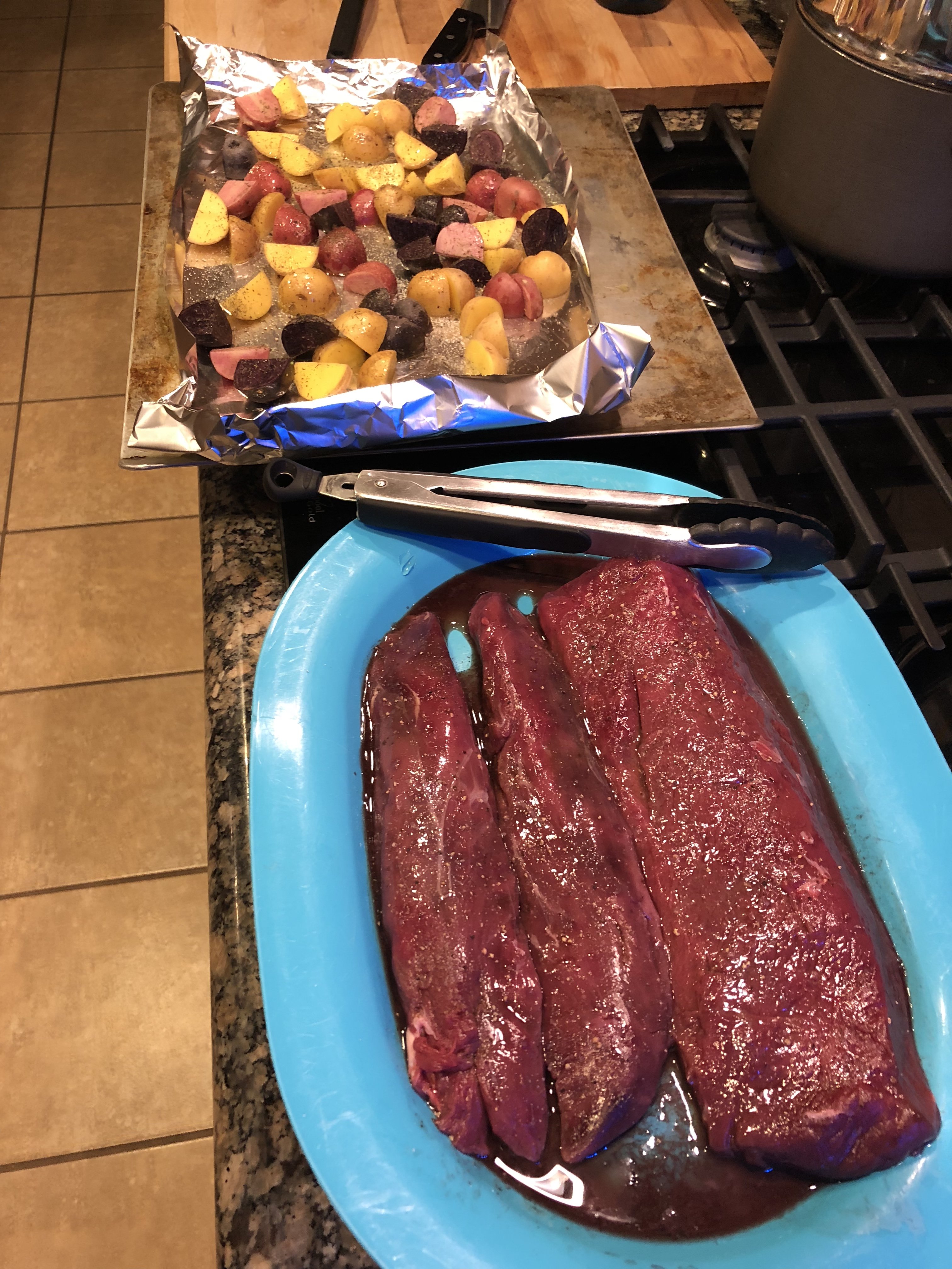 6 pounds of alder planked glazed honey/orange salmon on the BGE, 2 pounds of 10/15 Gulf Shrimp, sriracha and honey glazed brussells sprouts, smoked sweet potatoes, mac and cheese, salads, garlic bread, for 12 adults. The little kids under 10 got hot dogs.