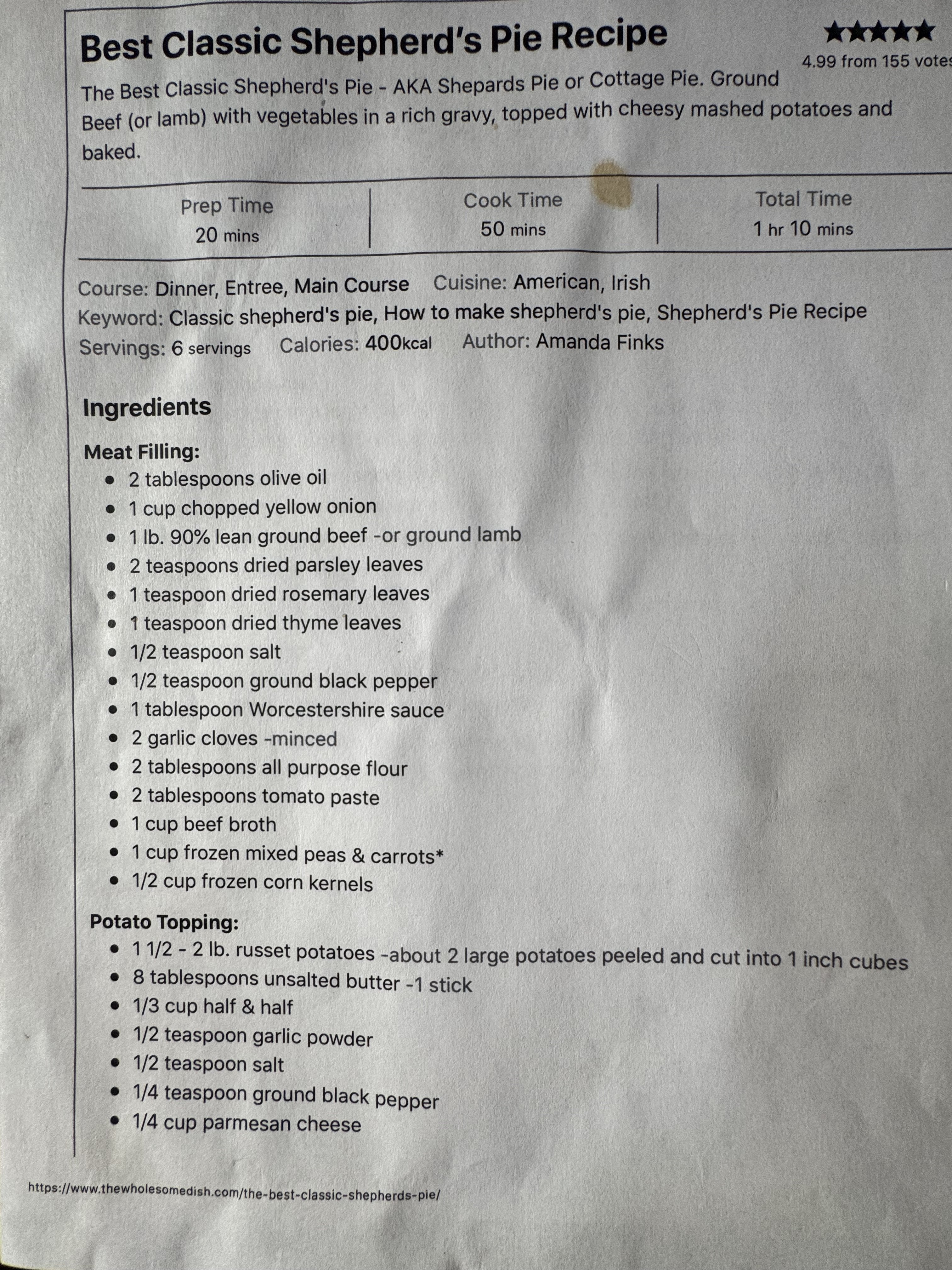 I'll post the recipe below. I follow it pretty closely. I usually take liberties with recipes as they are only guides, but this one is good as is. The only thing I switch up is the meat. I use 1.5 lbs of meat, only because we like meatWhat was your list of ingredients? Last time I made it, I used ground beef, diced onions and peppers, season salt, garlic powder, A1 to further season the ground beef.