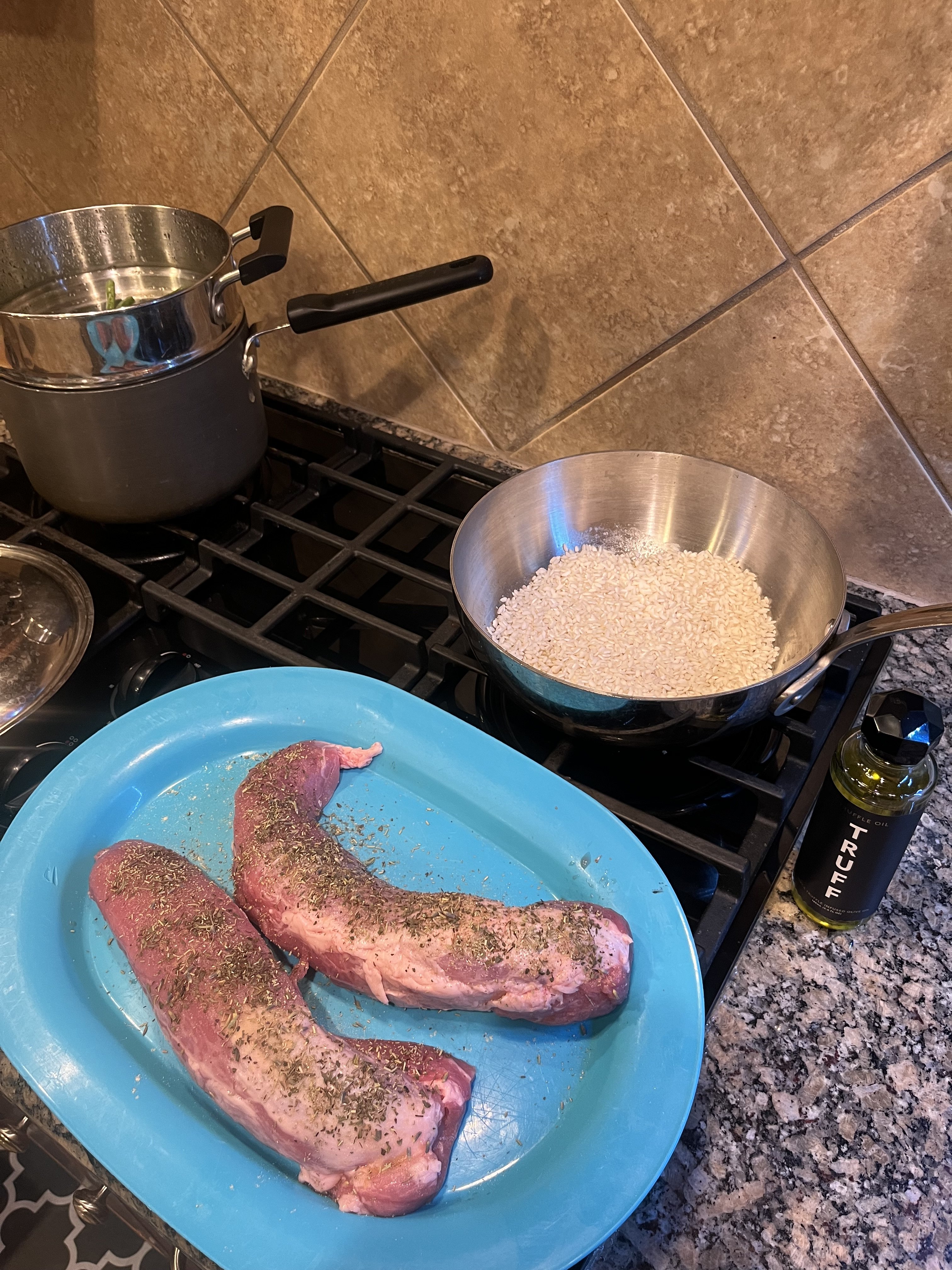 You must be serving it with an awesome wine...Menu tonight is herbes de provance pork tenderloins, truffle risotto and fresh green beans.
