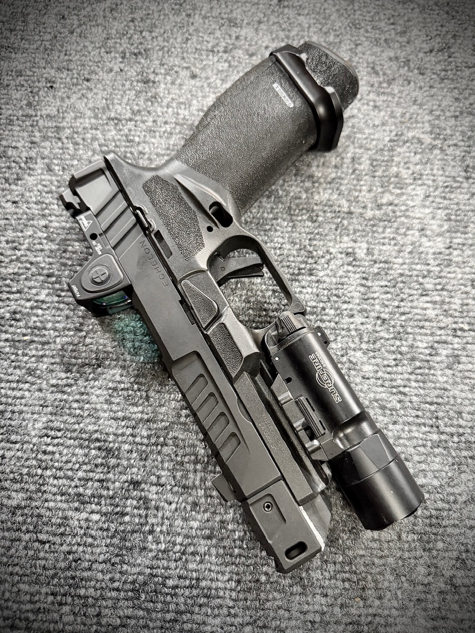 When will we see the 4.0 Comp?The compact will quickly become a best seller, think of it the same as a G17 vs a G19 size difference. It has been fun playing legos mixing and matching parts. Like the compact slide with the Floyds Custom Shop comp partially covered by the dust cover. In a year the Echelon series has become a pick your flavor style pistol.