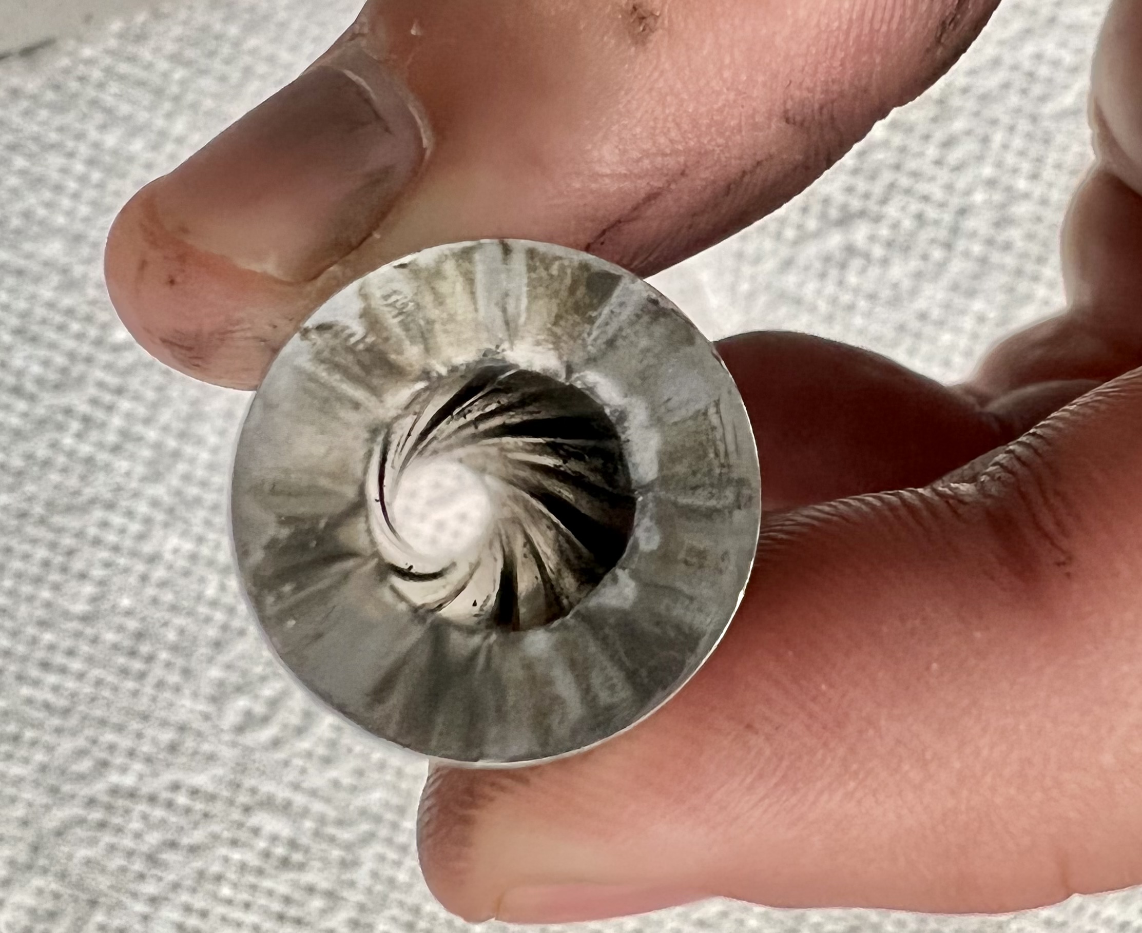 She is in total right around 5k total with a couple local matches, fun shooting my testing and about a dozen others going at it 250 rounds at a time. Shes been around the block testing with some local officers. But Probably around every 800 rounds then she get a simple clean meaning a wipedown And some fresh oil. Just finished she’s “clean” now, but it will almost be time for another detail strip and a trip in the ultrasonic cleaner.I'm not sure if its carbon buildup or powder residue. What ever it is there's a lot of it, but probably average for shooting a thousand rounds without periodic cleaning.