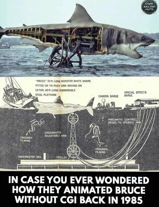 In 1975, Jaws hit theaters and terrified audiences worldwide. The secret? A giant, hydraulically powered robotic shark named "Bruce." Spielberg had three versions built… but the creatures broke so often that the crew nicknamed it "The Fake Great White Shark."