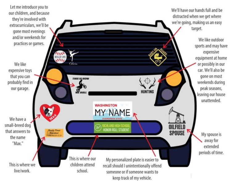 my training dealing with DOD was see me forget me. no NRA stickers, no bone collector, no dealer stickers,