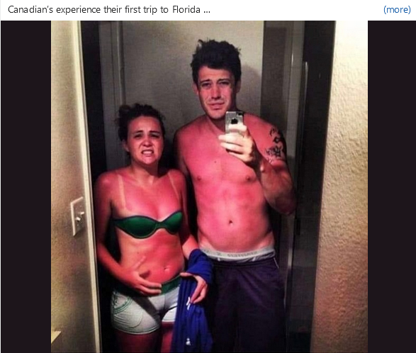 TRUTH! I sat in the shade with my sister at Cocoa Beach and ended up looking like this. Even Florida's shade is dangerous!