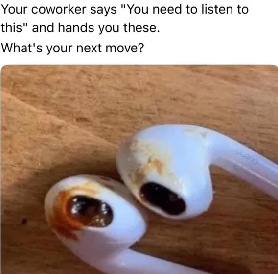 Old_Me Emissary Jan 9, 2025 #19,952 Jfal said: View attachment 73297 Click to expand... frankly, the way i speak up..?? i'd be telling that co-worker, "no way in hell would i stick those in my enemies ears, let alone mine, get that damned wax outta your ears"....
