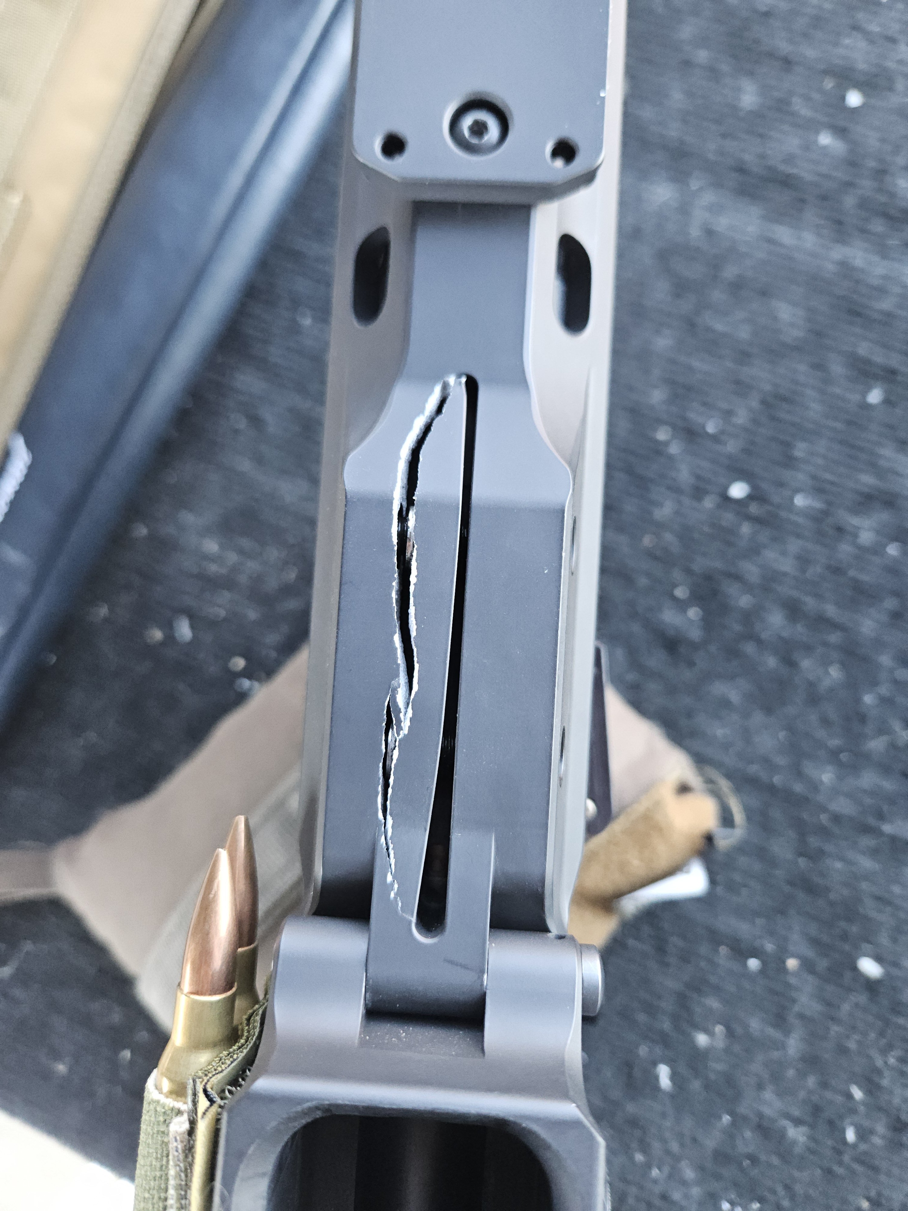 Belt Fed said: What happened there? Click to expand... There have been major issues at Barrett with the MK22, of you guys jave been following. Here's one of them. My serial number os near 600, seems like all of the 500-600 have cracked chassis when doing barrel swaps.