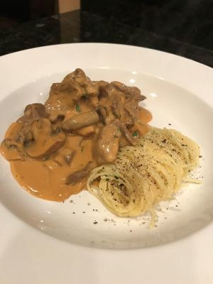 SAUTÉED VENISON IN MUSHROOM CREAM SAUCE