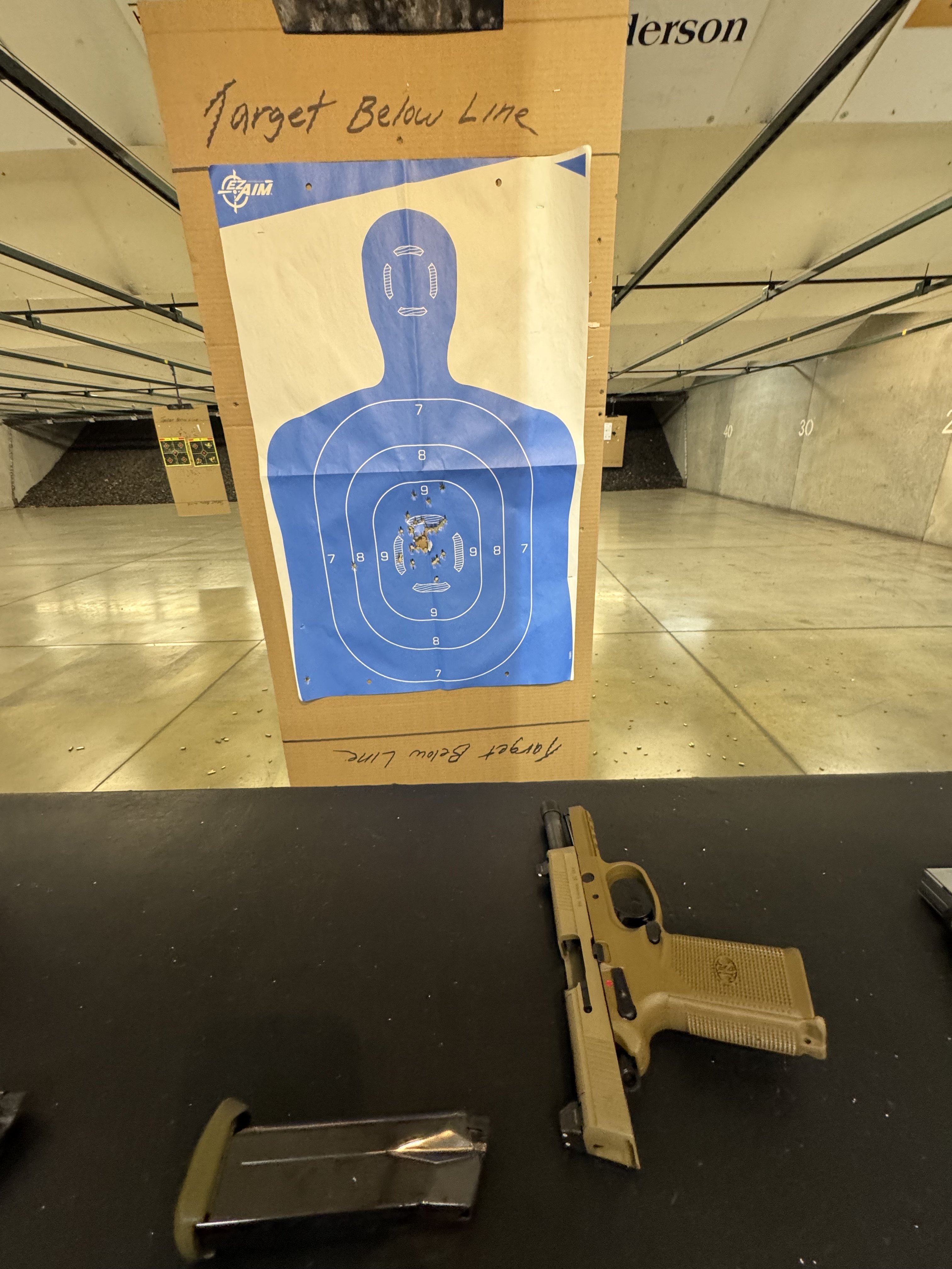 So all I really wanted to do was to blow off some 115gr we had left in the safe. It was quite uneventful, believe me. I know now that I do far better with 124gr, but hey...I knew that already. Anyway, the husband wants me to break in his FNX (is it even a thing?) so I took it along and ran a few mags through it.
