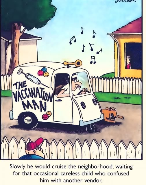 I think I'll stay glad I got the polio vax when I was 5! Now, I was in the Army, I got more shots than Jim Beam!