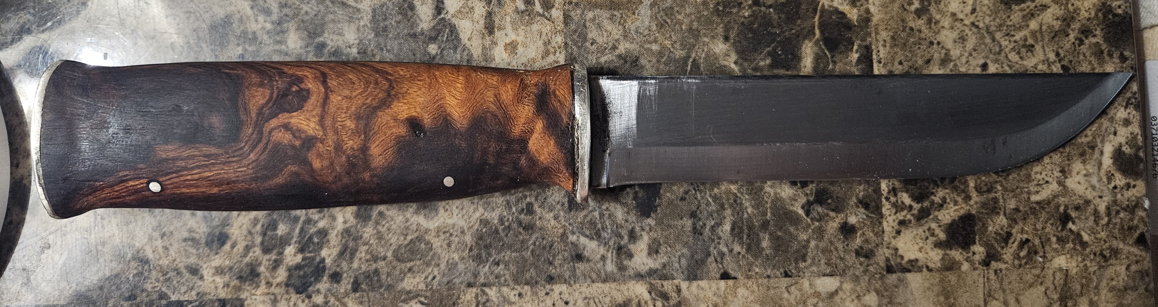 Next step is to shorten the scales to where a small tab sticks out of the scales. A butt cap will be riveted in place by the old method of peeling the tang ub down over it.