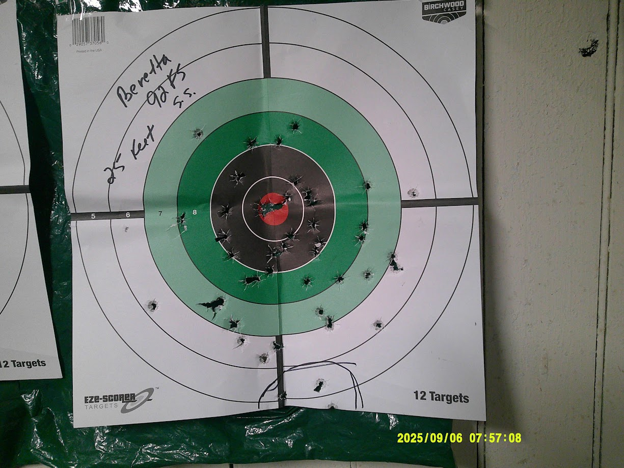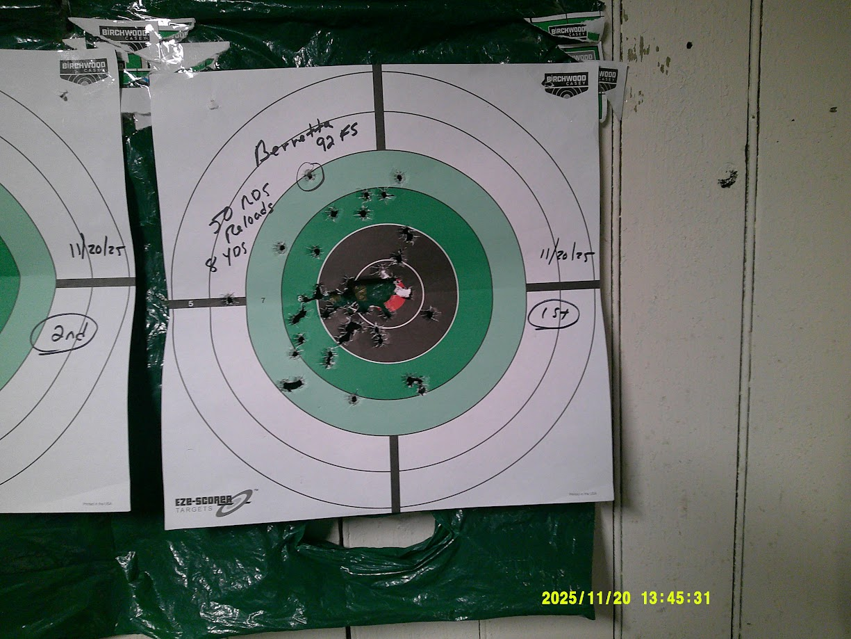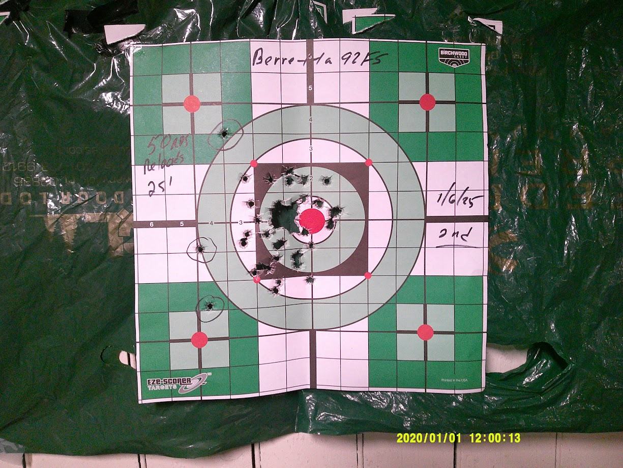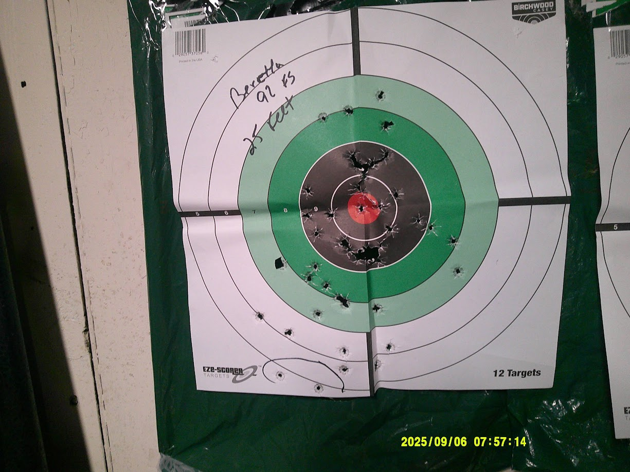 Left shoulder was 124gr at 10 yds zeroing the optic. Right shoulder was 15yds 124 gr. Head box was 115gr Hornady Critical Defense JHPs at 15 yds. The lower section of the A zone was 124 gr rapid double taps at 7yds the center target was 115 gr at 10 yds I went hard and fast on the center target because it was almost too easy to get good rapid hits things opened up as I went extremely fast Even so, I was happy with the results. That bad guy won’t be around to tell the story