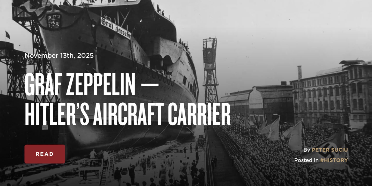 Hello all, here is today's article posted on TheArmoryLife.com. It is titled “Graf Zeppelin — Hitler’s Aircraft Carrier” and can be found at https://www.thearmorylife.com/german-aircraft-carrier-graf-zeppelin/.