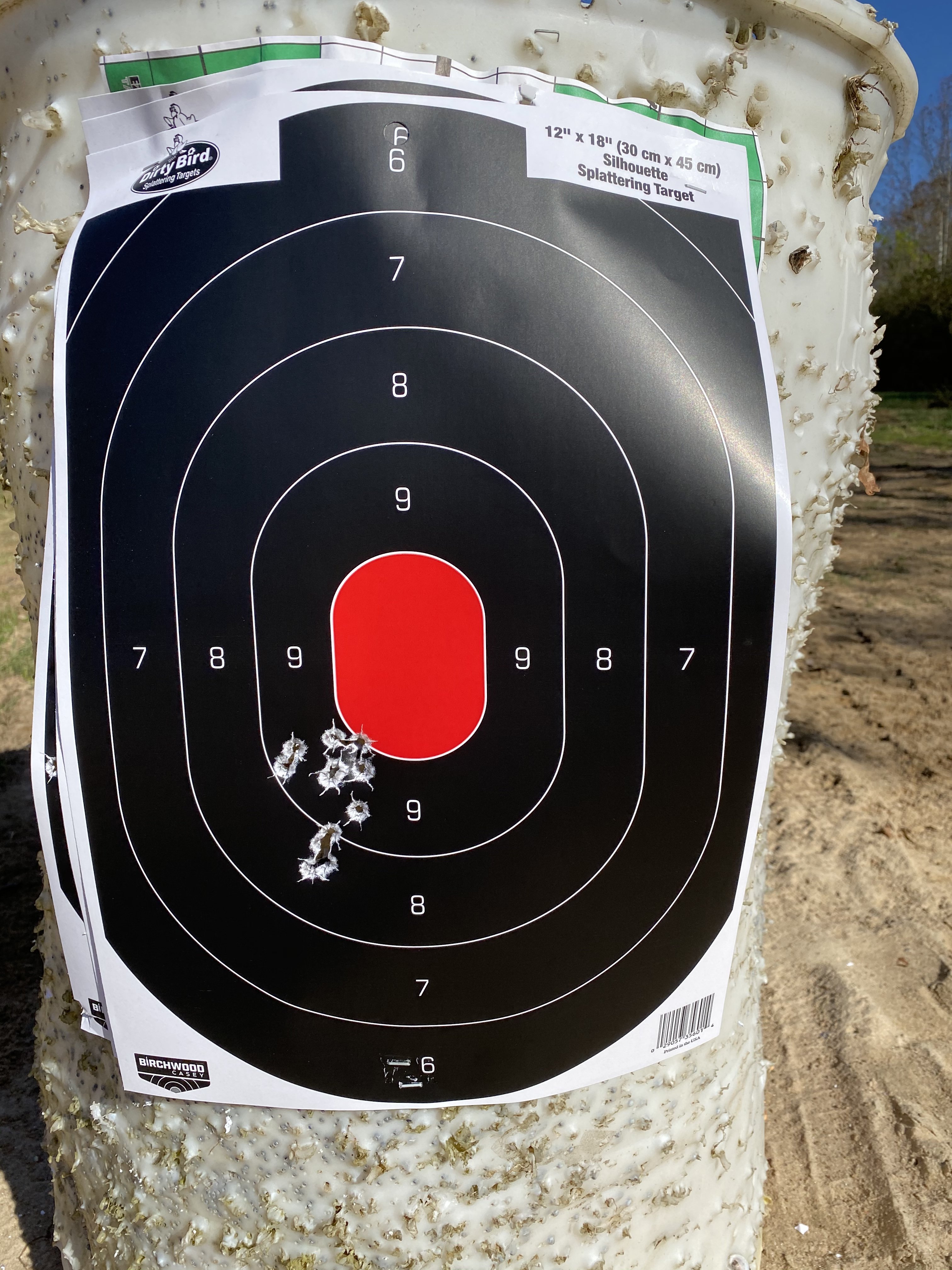 Also I'll note that mine has a real hard break on the trigger. That can lead you pull down a little. IMHO, on a heavy trigger a super crisp break is harder to shoot than one that slides through the break a little.