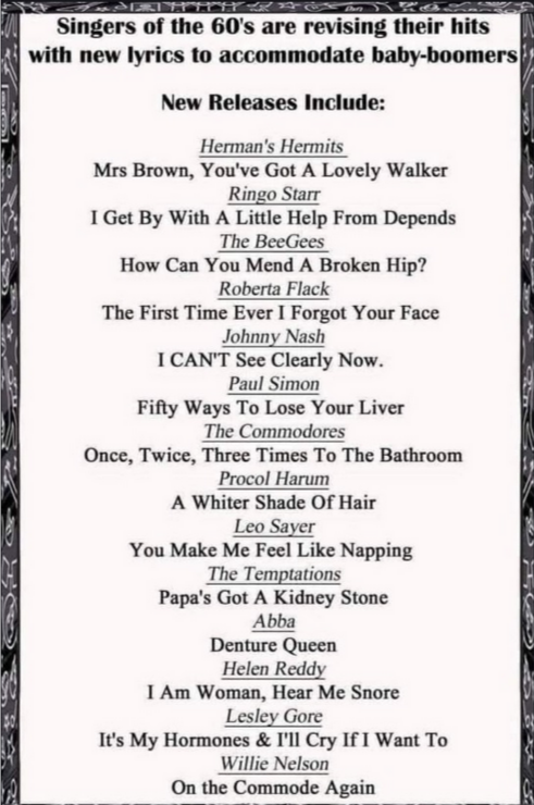 In His wisdom God decreed that seniors become forgetful so they would have to search for their glasses, keys, & other things, thus doing more walking. And God looked down & saw that it was good.