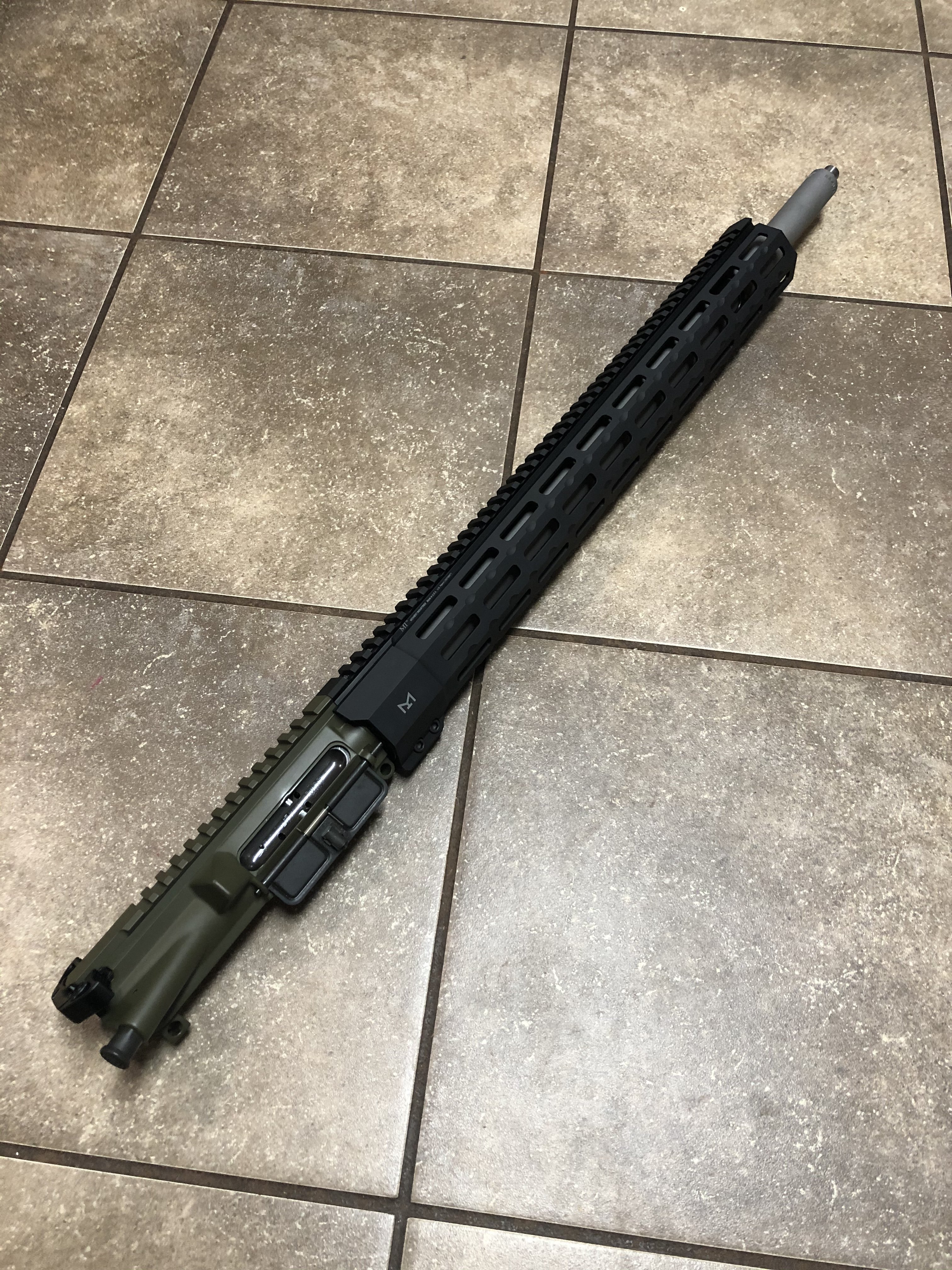 22” +2 rifle gas Bartlein mated to a sons of liberty upper in od green. Hg is a midwest sp18 and it has a jp full mass bcg and enhanced bolt, Geissele urg-I charging handle with bcm forward assist and ejection port cover.