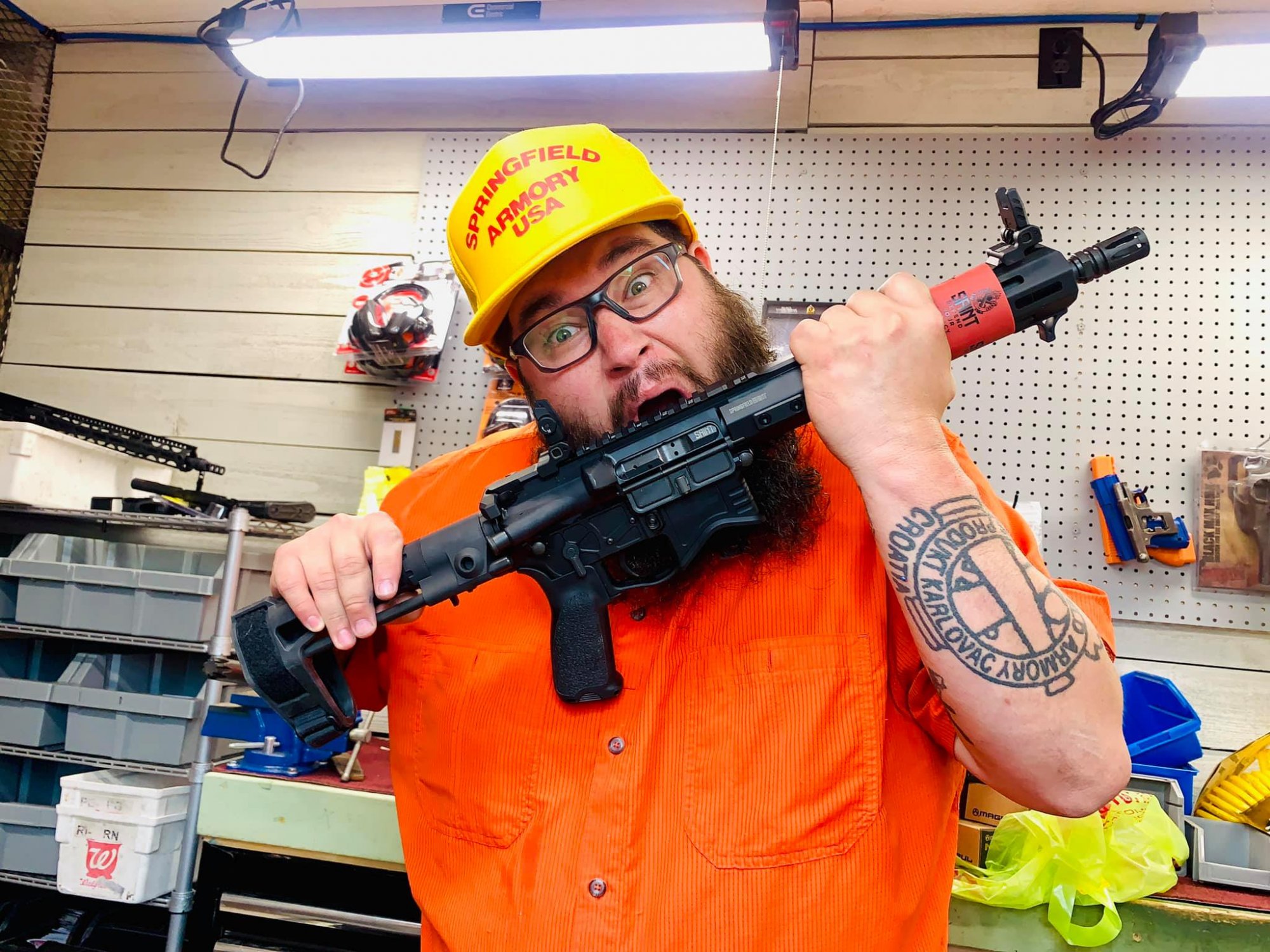 much more advanced shooter than me, and he challenged my thinking that day by asking what I was doing with the additional two hand-stops (Arisaka finger-stops) I had on my handguard at the time. I responded that it was so that I could lock-in better for recoil management, to which he simply winked a "Really?" at me. I took him up on the challenge and removed those pieces for the duration of the class, and, yup, found out that I could save those ounces (and the sometimes awkward interface that they presented) and still run the gun faster, simply by bettering my technique.