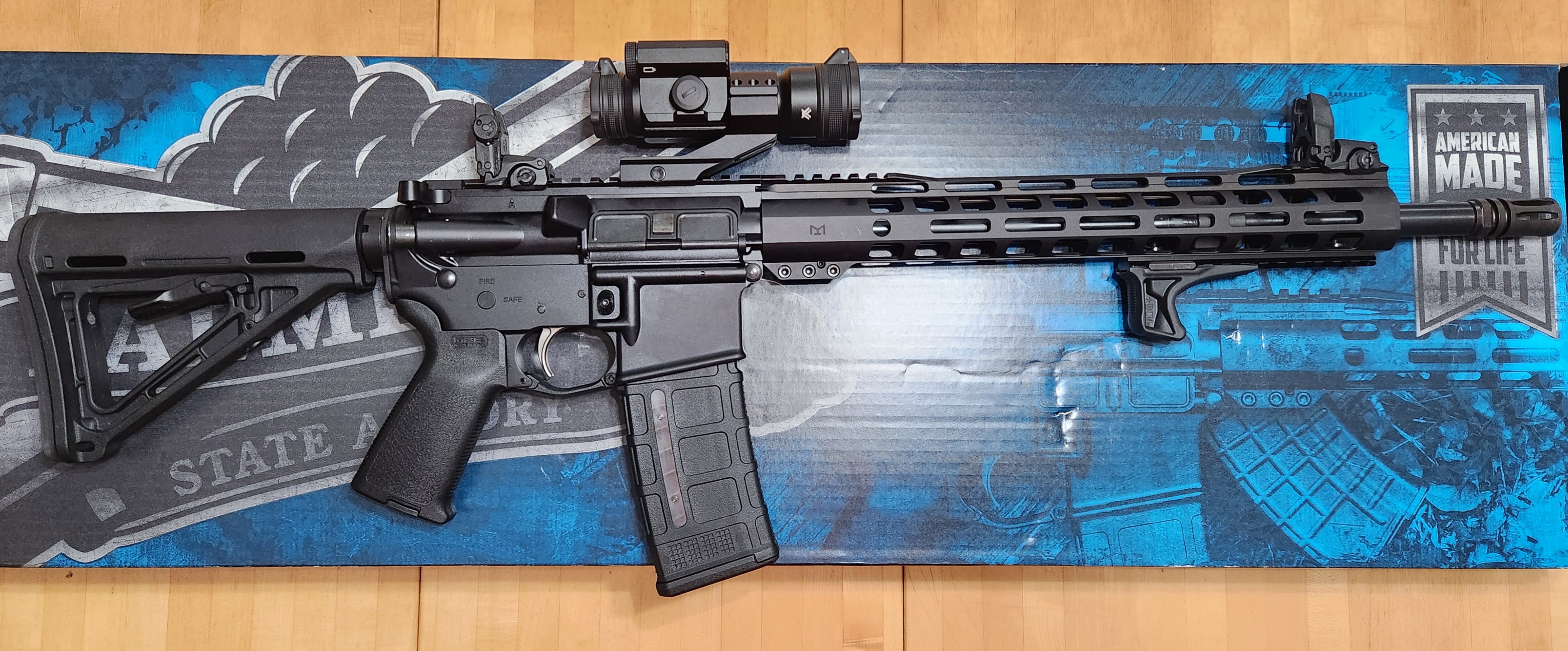 Came with a Magpul stock, Magpul grip, MBUS flip up sights and an enhanced polished trigger.