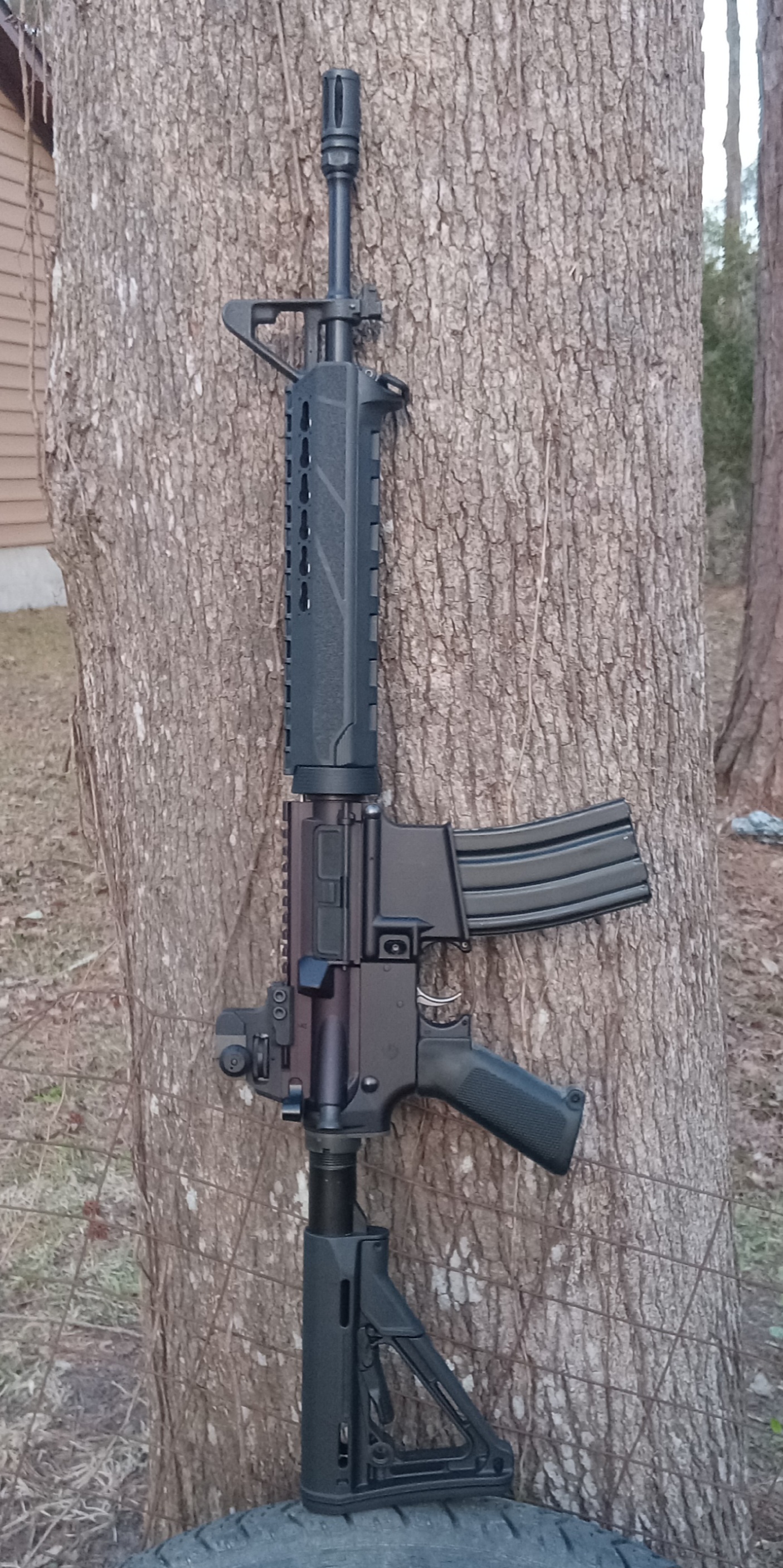 Well least that ones only half scary.Still working on it, have a green dot laser on the other side (controlled by the pressure switch seen on the handguard). But am seriously considering removing the rear sight / handle and putting a RDS in it's place.