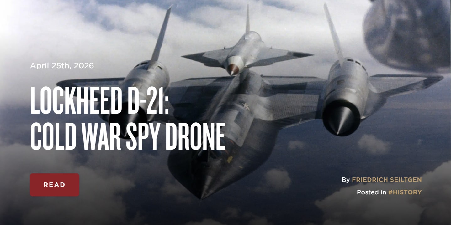 Mike H. Editor-in-Chief, The Armory Life Staff member Today at 10:00 AM #1 Hello all, here is today's article posted on TheArmoryLife.com. It is titled “Lockheed D-21: Cold War Spy Drone” and can be found at https://www.thearmorylife.com/lockheed-d-21-cold-war-spy-drone/.