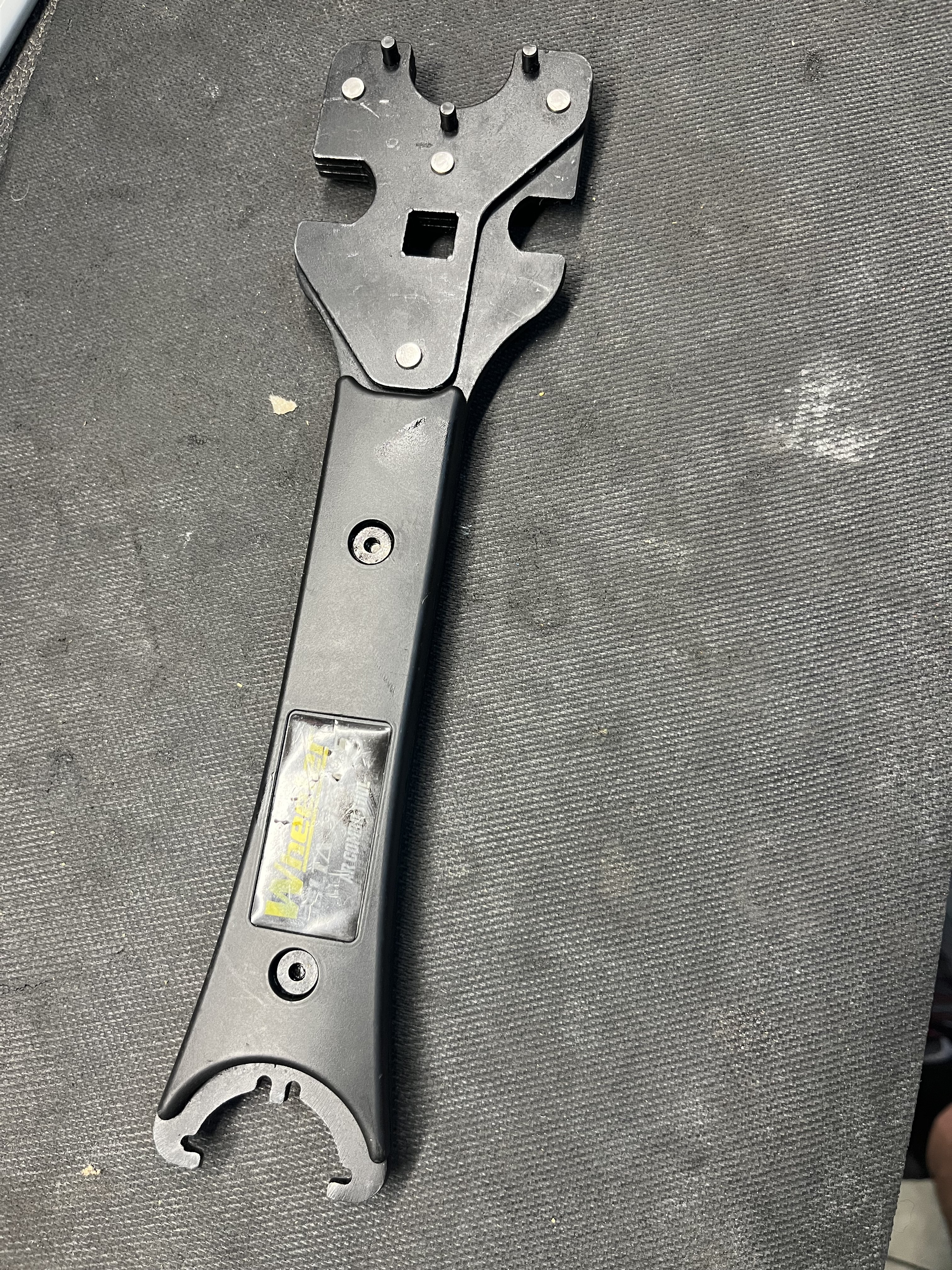 If it is the standard brake from SA, then you just need a good bench vise, (dont scratch the barrel, wrap it or use a barrel vise)