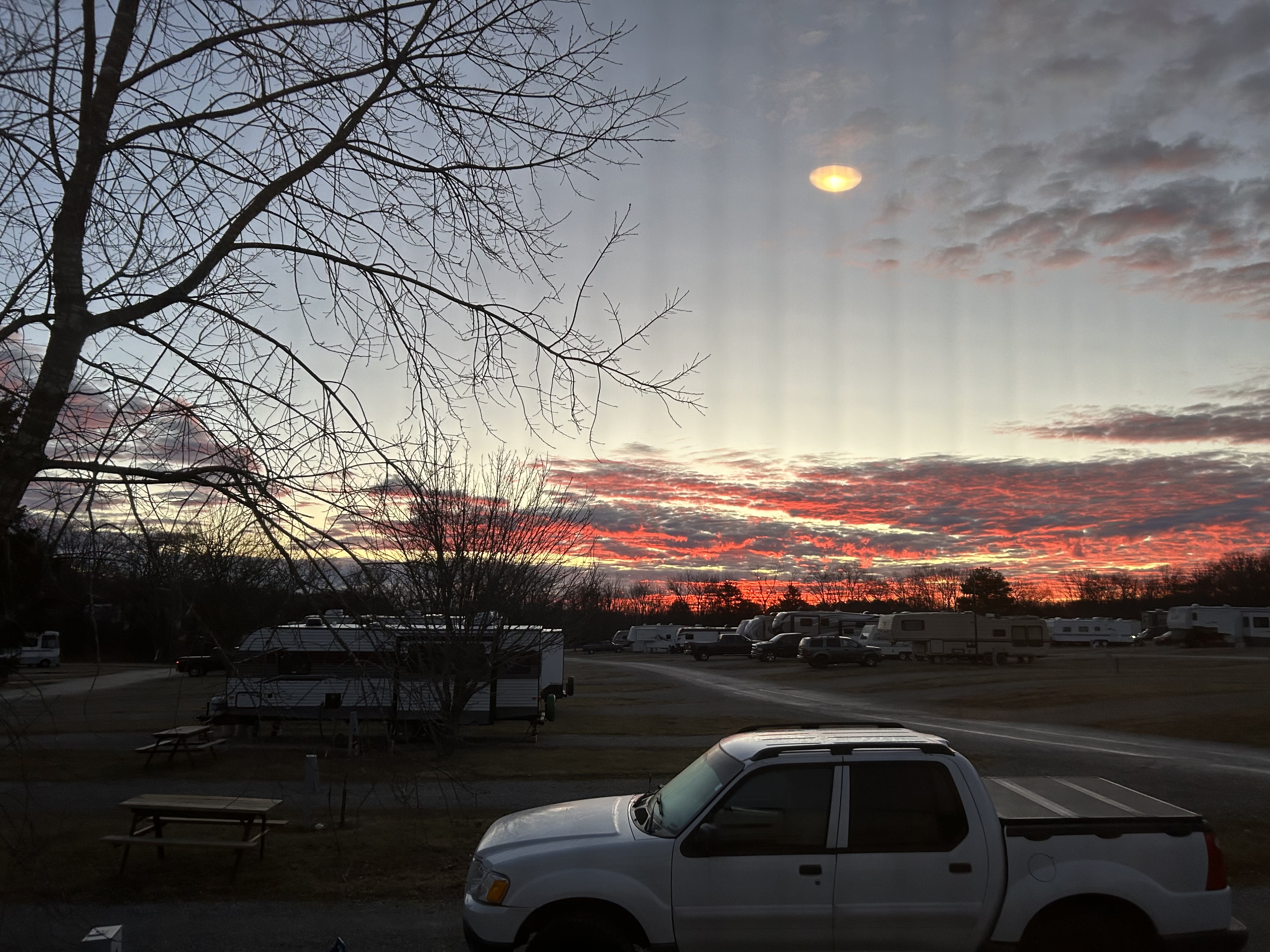 West Plains MO at 5pm it was originally going to be a one night layover but with multiple things to do that I couldn’t do in the pouring rain I spent Monday working on the RV and truck. I woke up this morning to this.