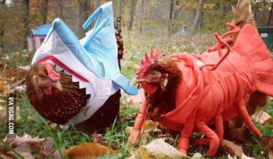 I seriously wonder about you guys some times. I also worry about the person who actually spends time dressing up chickens and animals for pictures.