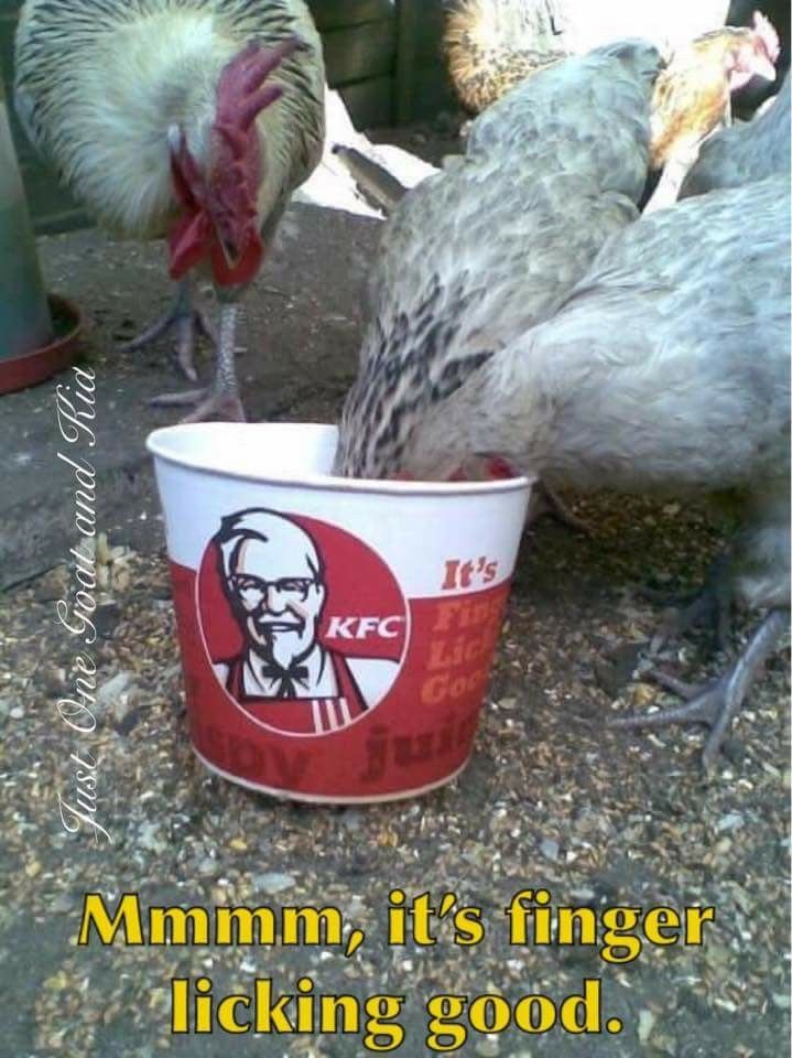You know this is how Col. Sanders got his start don't you!? Yep , a smart alecky chicken sticking it's neck out just like the above.![]()