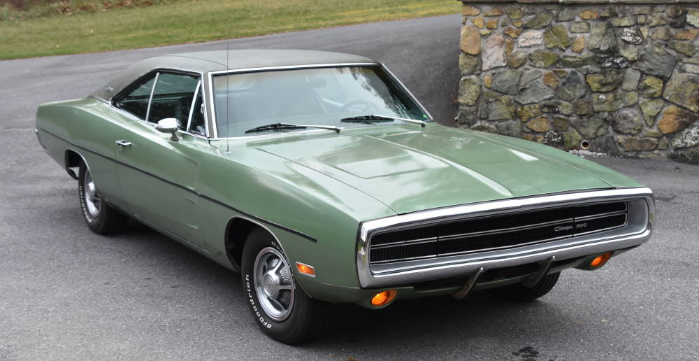 Yep, '70 Charger 500. Nearly identical to the one my mother bought new in '70...and my cousin totaled in '75. Been looking forever for the "right one" - and this is it. Triple-green just like hers (hers was EF8 dark green; mine's FF4 light green), factory a/c car, console with buckets and floor shift, and 100% original survivor. Every nut, bolt, screw, trim piece, and lens is the original that it rolled off the assembly line with. The only changes are maintenance items from the last 50 years - belts, hoses, tires, shocks, and exhaust. 318/auto with factory a/c, just like mom's. FL car all its life (I drained the water out of the radiator and filled it with real antifreeze as soon as I got it home to Maryland!). Had one repaint for some reason - I haven't found any body panels that have been replaced, no bondo/mud, and they all have the original shade of green on them underneath - so the only thing I can think of is, sun fade. It's an OLD repaint - single stage lacquer, no clearcoat - and I'm gonna leave it alone. Just have to figure out a way to get those goofy black rub strips off the sides - they're on with double-stick tape and it wants to pull the paint off with it, so I'm going to try citronella tiki fuel. I've read it will eat through the adhesive without damaging paint. I'll give it a shot. Got a good "tinker-list" though - dash lights don't work, horn doesn't work, needs motor mounts, the exhaust taps on the transmission (motor mounts may fix that once the motor is sitting straight), heater core is unhooked (leaking? or just "it's Florida, I don't need heat, I'm not going to replace those hoses, just unhook it and plug the hoses so they don't leak"), and I may convert it from manual 4 wheel drums to power front disc brakes just for safety. But for a 50 year old car that I've been looking for, for 40 years? I cannot complain. It'll be a fun journey.