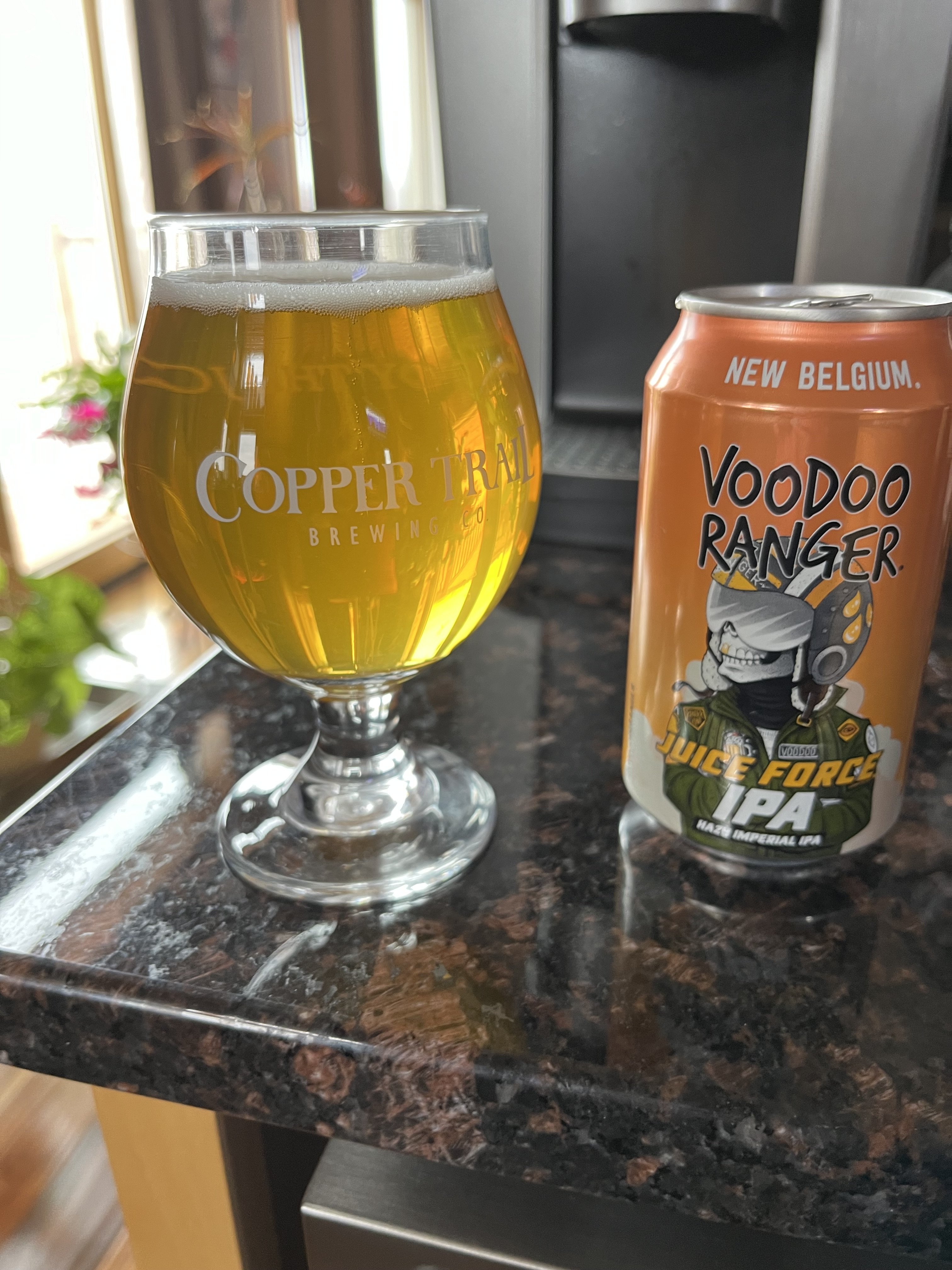 And I just noticed the Copper Trail glass—I like that place; don’t get there often enough, though.Found some Voodoo Ranger at the big liquor store and decided to enjoy one on this cold, gray day. Still no Hopslam - still on back order.