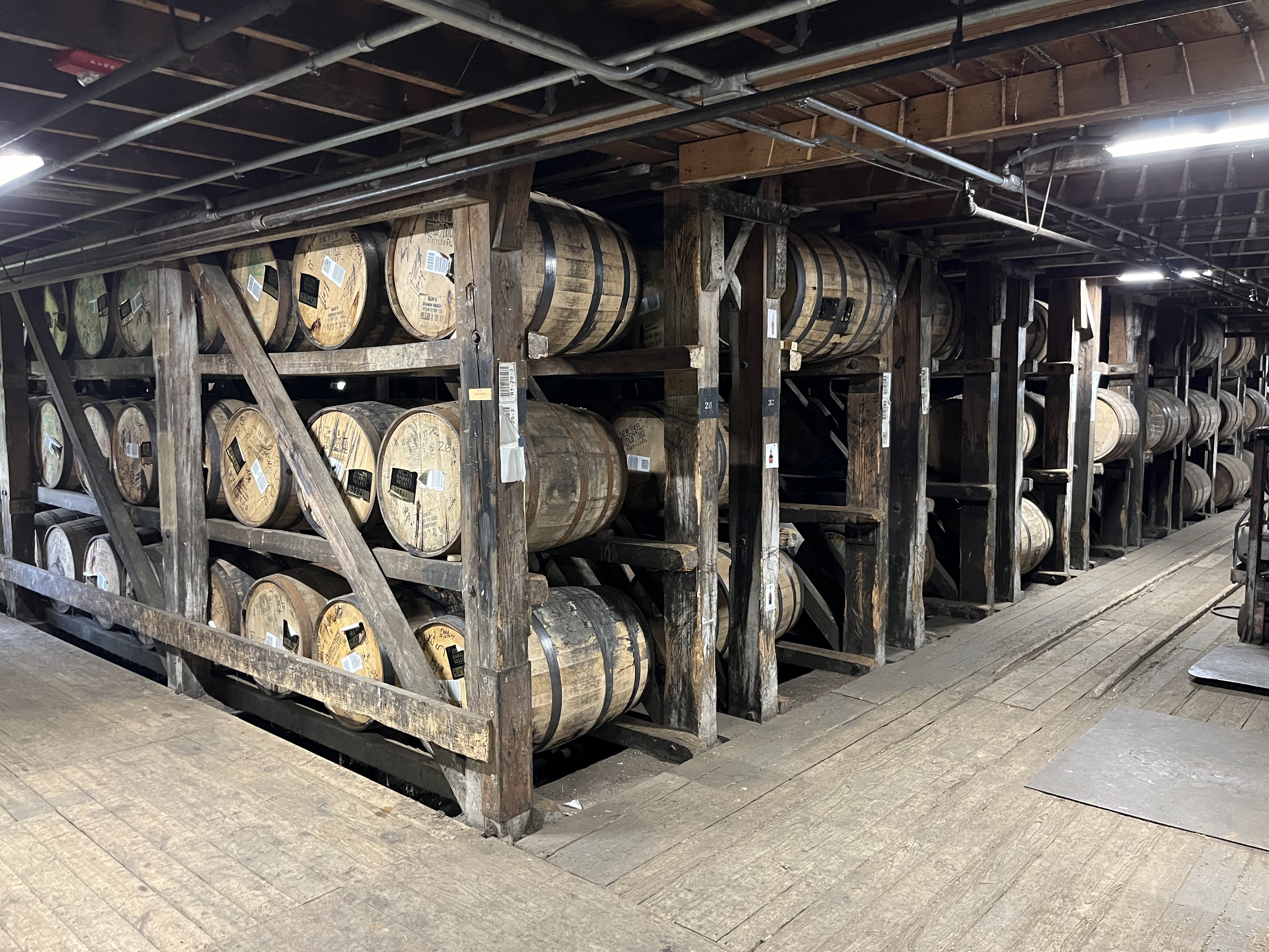 Different single barrels from different floors in the barrel warehouse