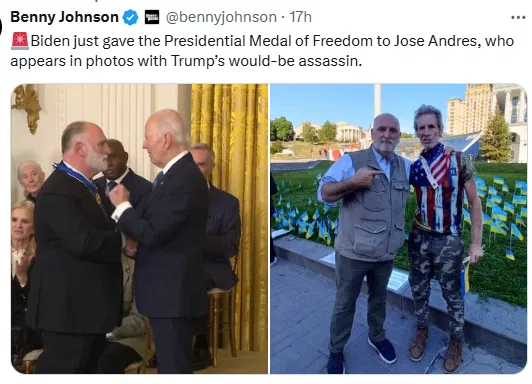 Jose has done some amazing humanitarian work in some of the biggest disaster areas in the world. I'd say that one is deserved. I have pictures with guys from a prison white power gang, because they came to a party with a buddy who just got out of the can. It doesn't mean I support any of their positions.