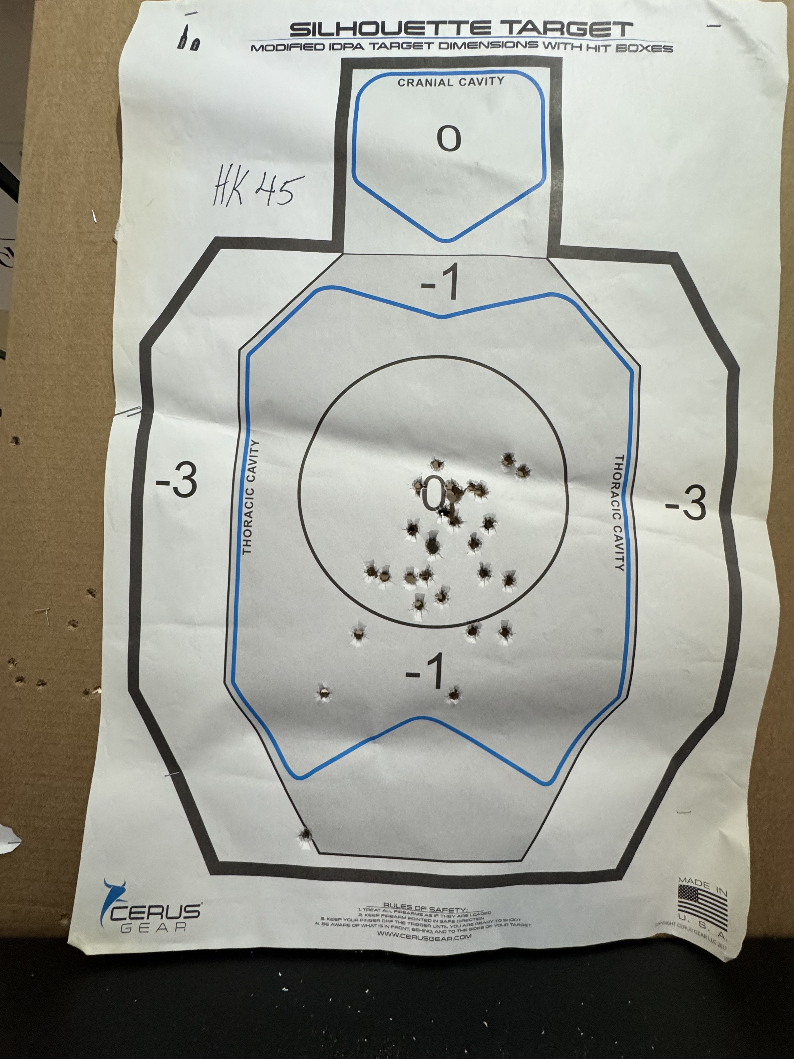 Next up was the HK45C. I was really looking forward to shooting this one. I used another old target I had in the back of the vehicle.