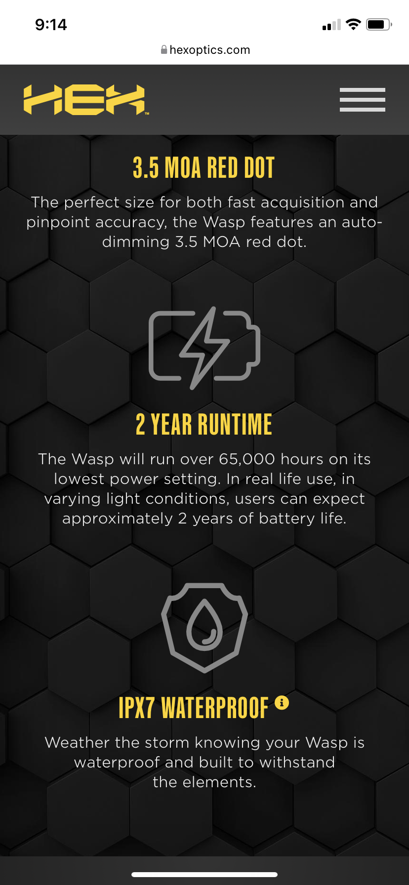 That's some great battery endurance!I have a Hellcat FDE OSP, it came with the WASP installed, the dot stays on all the time, battery is supposed to last around 65,000 hours or 2 years