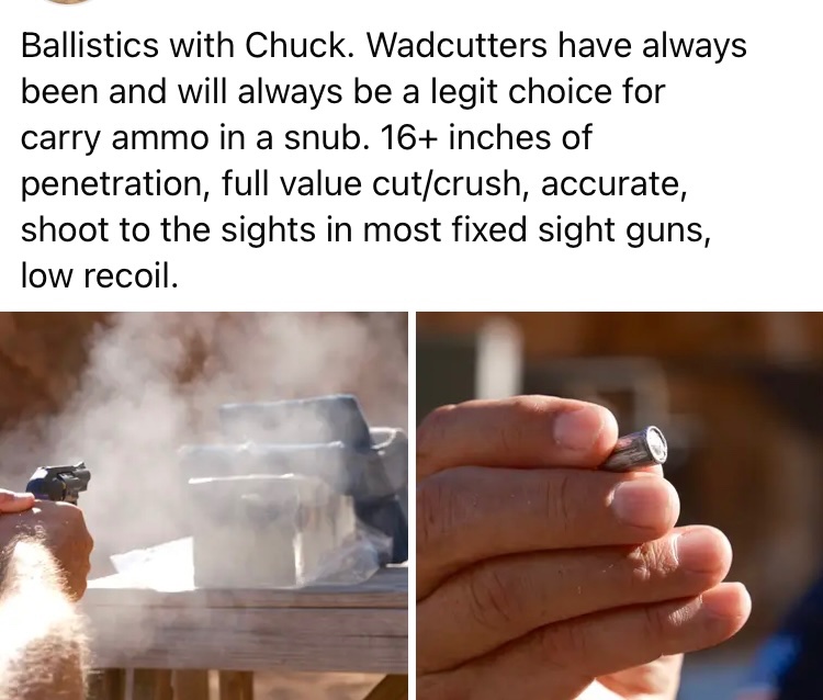 Snubs uiu get the blast but no benefit with most 38 defense ammo. And while those that just don’t know scoff at this The best defensive load and all around ammo tj shoot from snubs is basic full wadcutter target ammo. It shoots to the sights, is easy on the hamds and the full wadcutter doesn’t need speed it cuts a full diameter 38 cal hole in a sternum and gets to the goods.