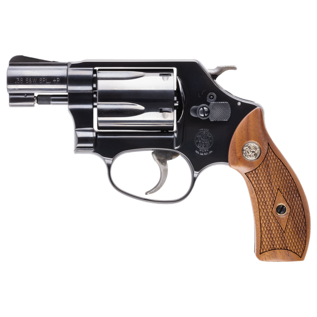 From S & W: This small revolver, designed primarily for plainclothesmen and off-duty police officers, made its public debut at The International Association of Chiefs of Police conference in 1950. At the conference, the Smith & Wesson sales force asked the police chiefs to vote on a name for the new revolver. The most commonly suggested name was .38 Chief’s Special®. Designed with the needs of law enforcement officials in mind, the Chief’s Special proved to be a popular revolver for personal protection due to its size and weight. When Smith & Wesson adopted model numbers in 1957, the Chiefs Special became the Model 36.