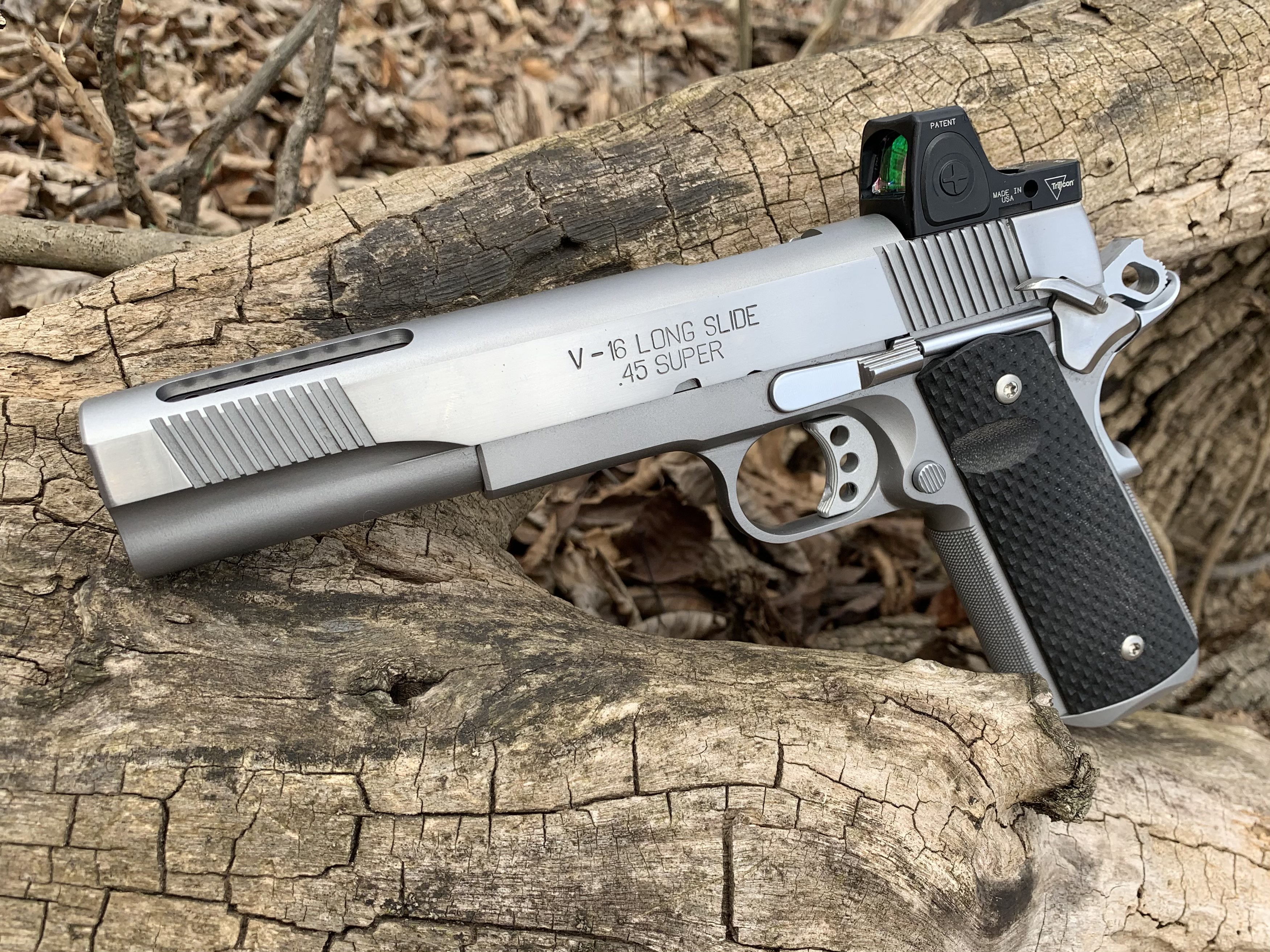 .45 ACP on the range, .45 Super in the woods in a chest holster