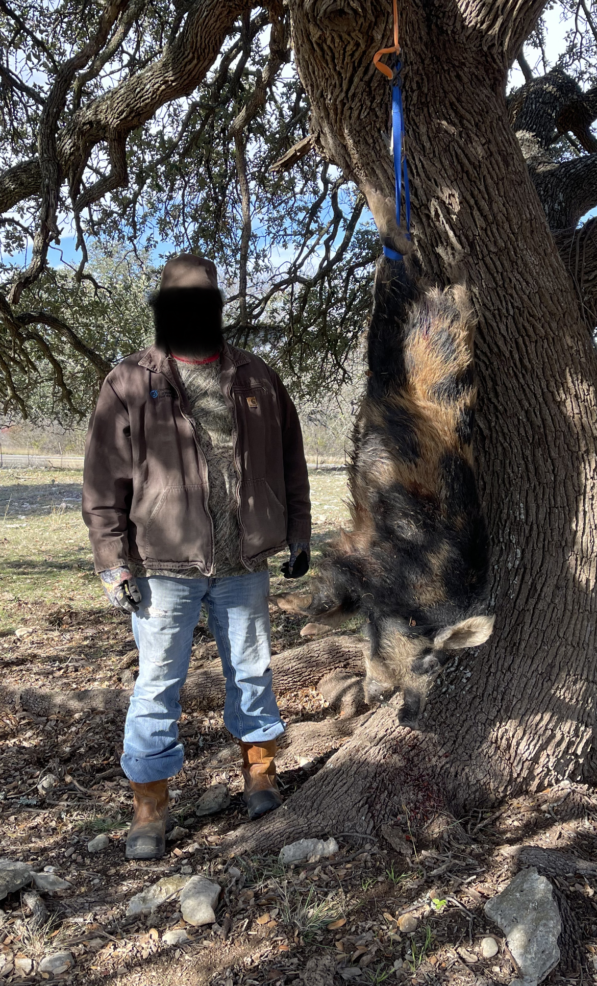 Buzzards gotta eat. in cooler weather If we have a bunch in a trap I pull together my posse with coolers and lots of ice and rock salt for a slurry and we set up to butcher. 6 of us can butcher 8 sows in about 2 hours. But we do a poachers cut and take backstrap, hams, and shoulders without opening the cavity and dump the rest. I have numbers for guys who will come pick up shot hogs. We have killed about 250 of them on my place in the past 10 years.