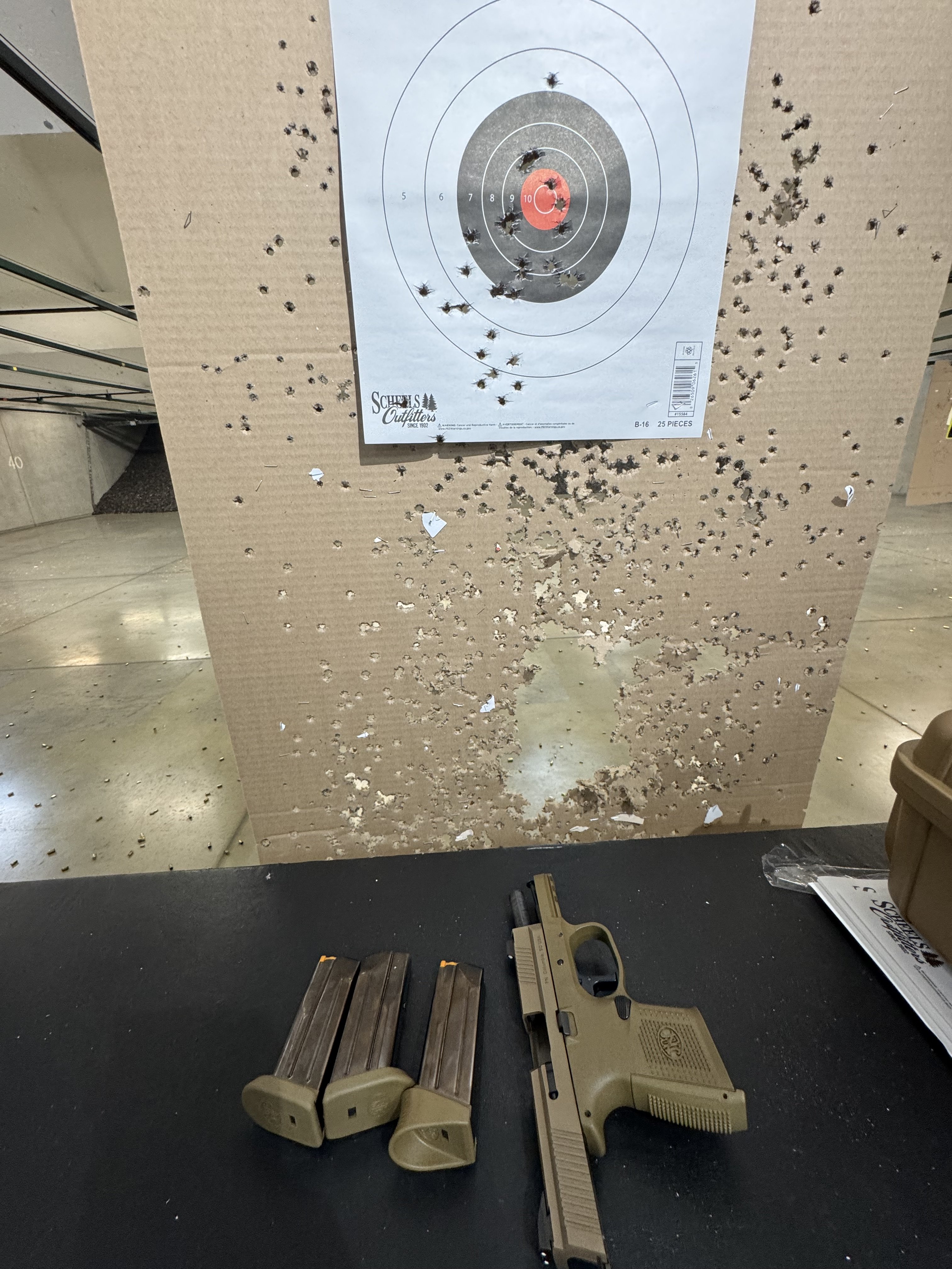 I set my kit up in my lane and set my target out to 10 yards. I started with my "feel good" gun, the 509. I had three mags loaded with 124gr and two with 147.