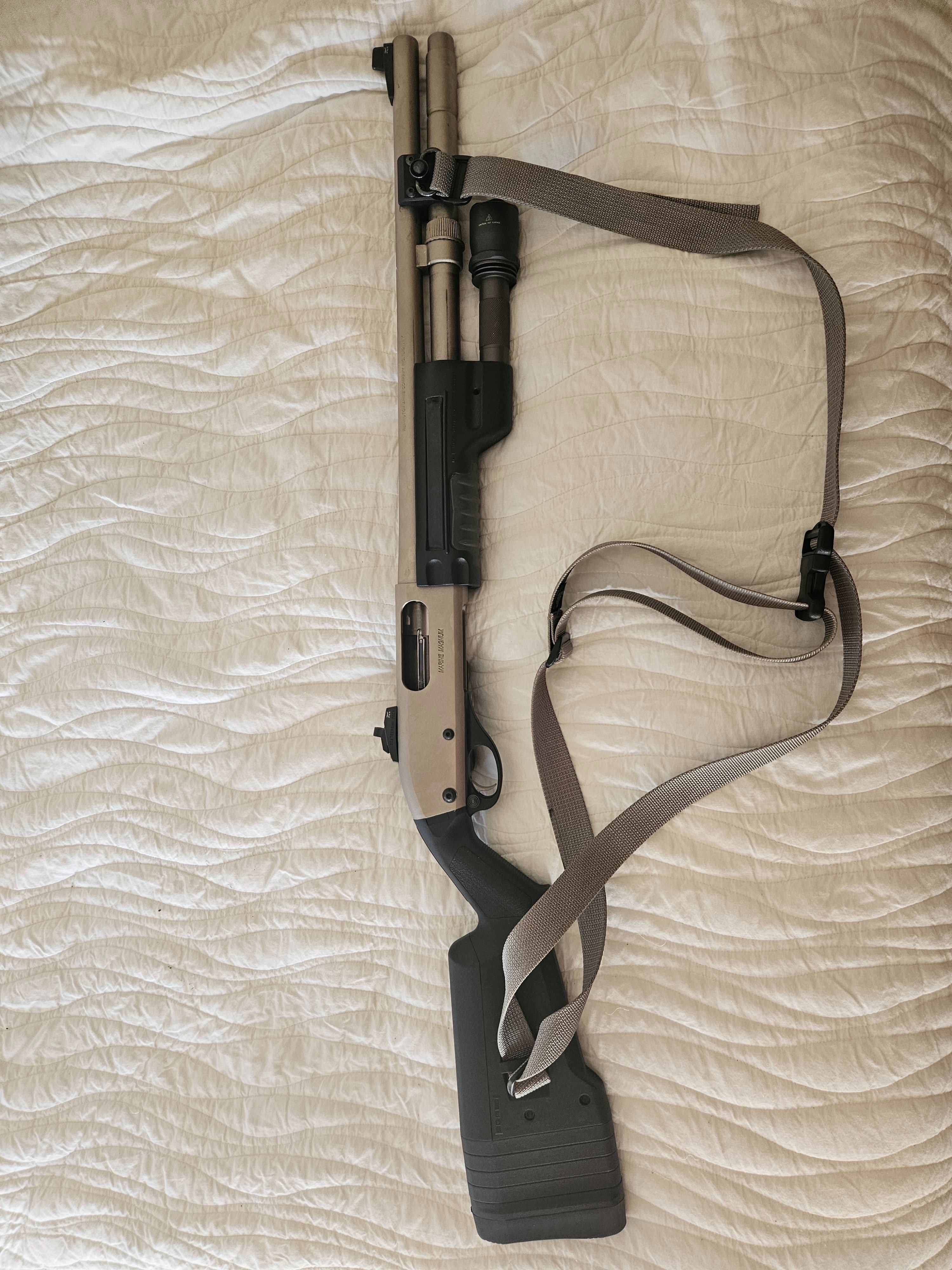 We can use a shotgun sling like a rifle sling to aid in precision shooting via tension, and for slugs, that’s fine. Shotguns with buckshot at shotgun ranges don’t need all that much help with putting rounds on target. What a properly tight and tense sling can offer is recoil control.With shotguns, we use a push/pull method of recoil control. We pull the stock into our shoulder and push the shotgun forward. This creates tension, which reduces recoil and makes it easy to control the mighty recoil of a shotgun.