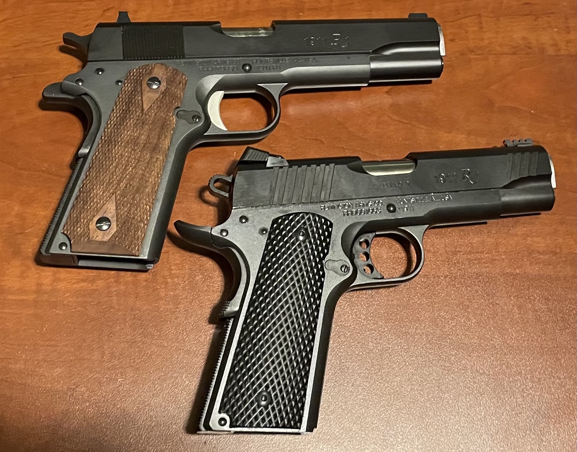 My brother has the one like you got, the enhanced commander. Nice gunsAnother post got me thinking about these two, so I dug them out of the safe. I'd always been curious about 1911's, but they were just too expensive. In early 2019 Remington ran a huge rebate special on their R1 models. I picked up the original R1, and liked it enough to buy the R1 Enhanced Commander about a month later. I was able to purchase both for about $400 each after the rebate. One day I'll make the jump to Springfield, but for now these are my only traditional 1911's.