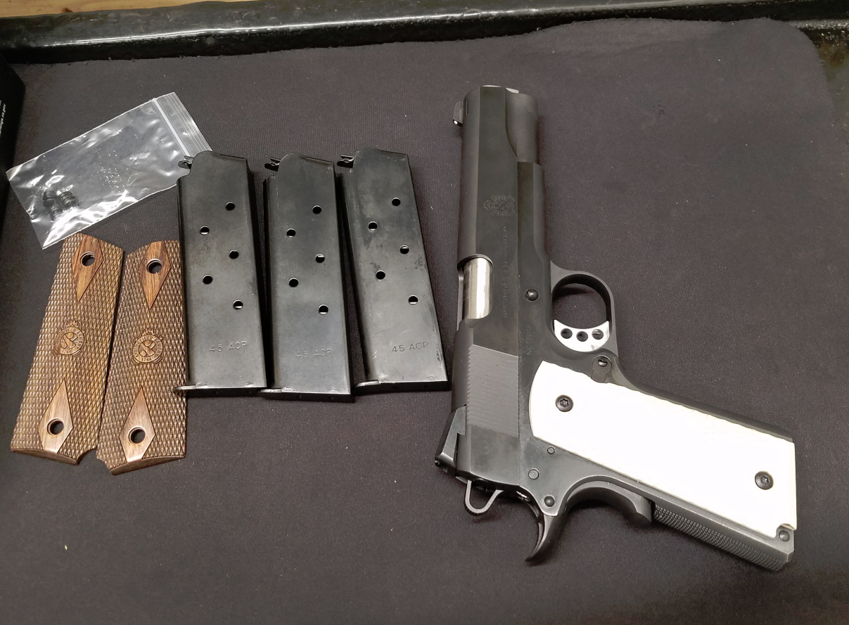 You can't get this on the CA DOJ roster! It came with three mags and the stock hand grips. I really liked the upgraded grips. They are a little wider, they fit my hand great, and the stippling is very aggressive, again I like. This trigger is the best! I'll need a little more practice but on the fourth magazines I got 5 bulls out of 7. It will only get better!