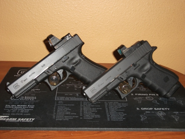 My Gen 3 Glock 22 .40 Cal. It has a perfect 21-year track record of no FTFs or FTEs and I've put so much ammo thru it of varying quality that I probably should be ashamed of myself. But, alas, it's a straight up uber reliable well built handgun. It currently resides in my GTFOOD bug out bag along with six 15 round mags of Speer JHP. I have a tac light on it but it's not in the pics. And also attached is my most recent purchase, my Glock 43X, so far I've been impressed with it's accuracy for such a short barreled handgun. It has some pop to it, but once you shoot it a few times, you get used to it.