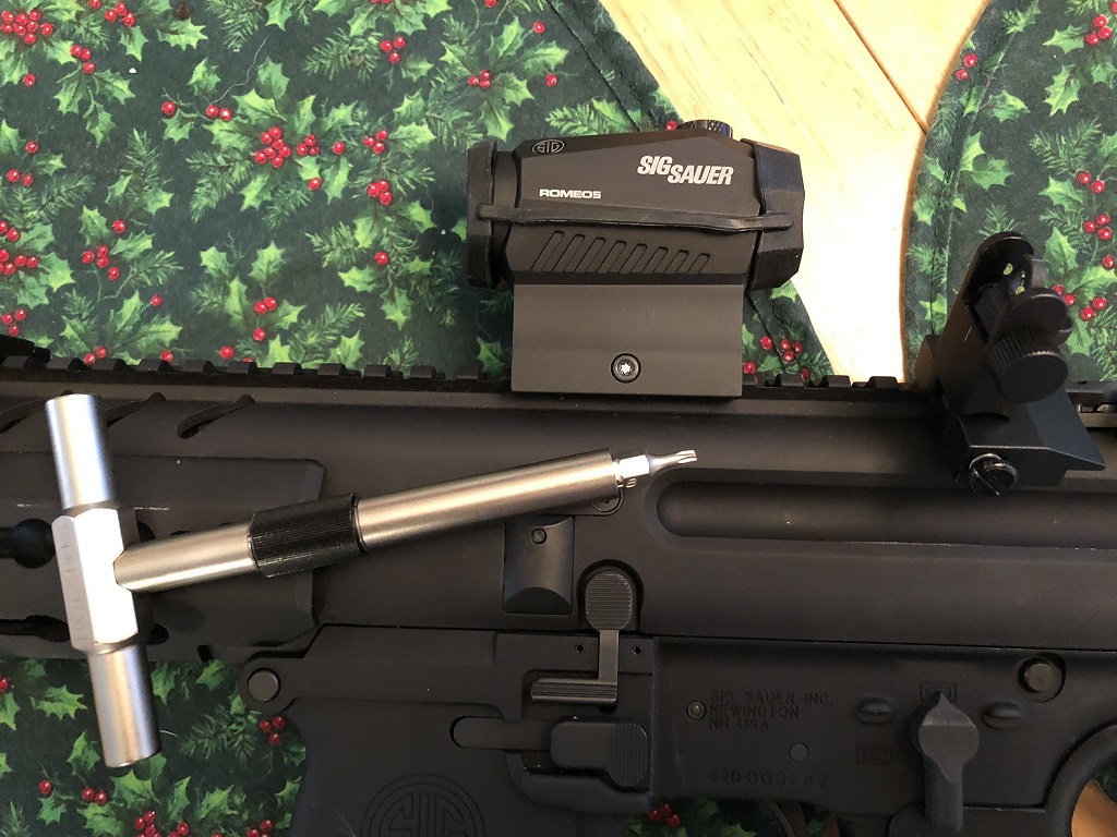 I should have taken pictures when the exact same thing happened to me, but frankly I was kind of embarrassed about the whole thing. I put one of my Romeo 5s on my brand new Beretta 1301 just to see how it looked. It didn't have any Loc-Tite on it and I didn't use a torque driver. I tightened it by feel, the exact same way I did my other 5 Romeo 5s on other guns. I broke 3 T-10 bits trying to get the screw out. Like a dumbazz I decided to drill it out. I got it off, but it screwed up the rail on the Beretta ( $40 it cost for a new one). Then I bought a legitimate set of Torx drivers and a Wheeler Torque wrench/driver. I took all my other guns with Romeo's on them and took the screws loose with a T-10 driver. Made sure I had it all the way in there and kept pressure on it while I backed them out. No problems. Then I used the Wheeler to re-torque them. Lesson learned. I don't know if it's something with the Romeo 5s, but it's awful strange someone else here had the same issue I just got done dealing with. I installed the replacement OEM Beretta rail on the 1301, torquing the clean and dry screws to proper Torque rating, put a 510C on it, shot the hell out of it (About 450 rounds now), rechecked the torque on the rail screws, no problems.