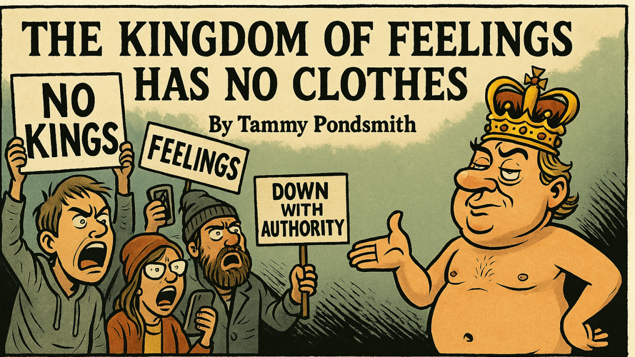 by Tammy Pondsmith There they were again last weekend: the No Kings crowd, out in full regalia, chanting their feelings about tyranny while livestreaming Tammy Pondsmith skewers the No Kings Protests, exposing fake outrage, paid agitators, and the politics of manufactured victimhood.