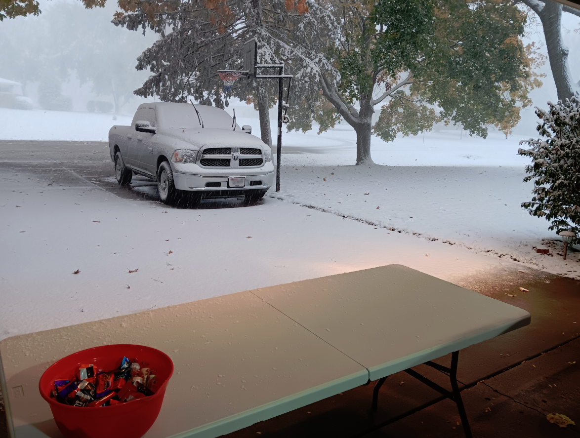 We had one brave kid show up after the worst of the storm passed. What was supposed to be a "light dusting" turned into almost 4".