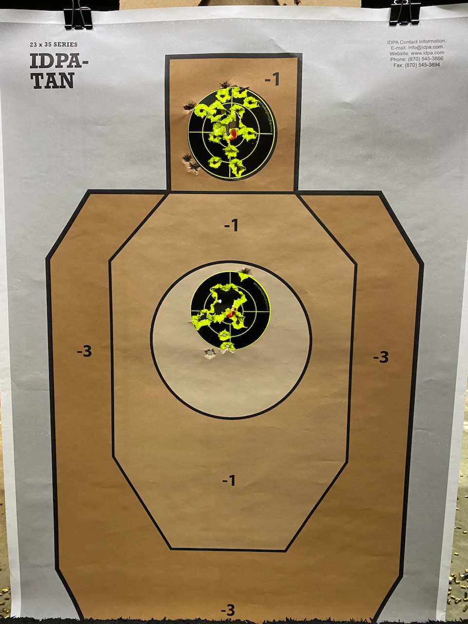 I shot a total of four magazines, forty rounds, ten at each bullseye on this silhouette. I was having a really rough day.